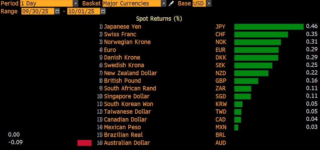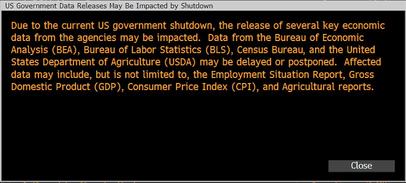 One last detail on the US Government shutdown before we head off into the trading day … any US economic data provided by a government agency, including the BLS’ non-farm payroll due this Friday, is now clearly under jeopardy of not being reported: