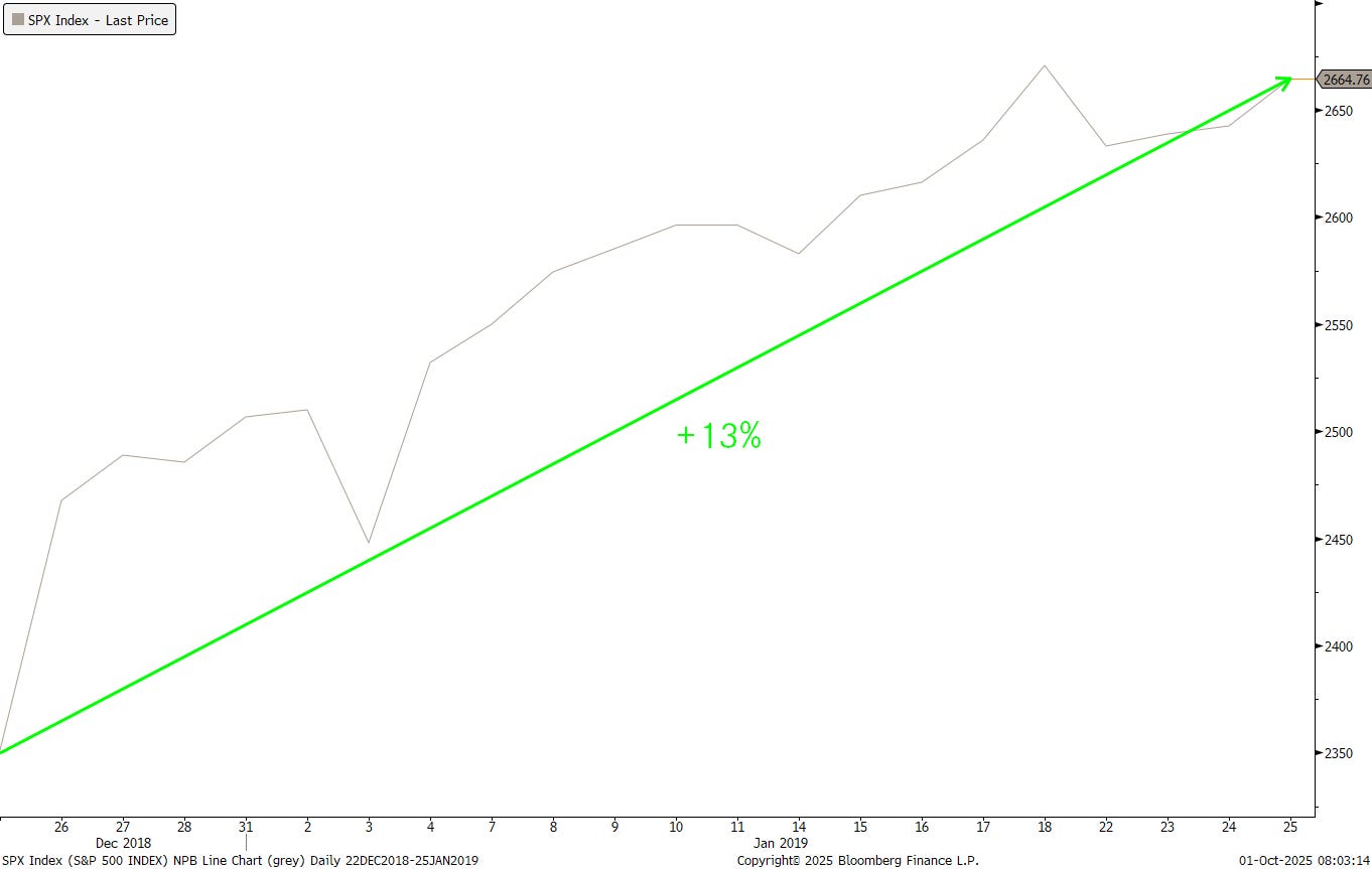 What did the market do during that last, longest shutdown period in 2018/2019? Here’s the S&P 500 over that period: