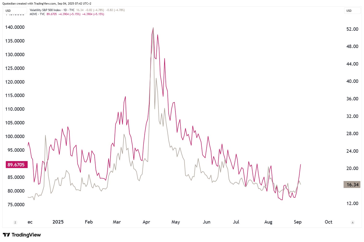 We spoke above how bond markets are somewhat in jitters at the moment, which is not least projected also by an increase in THE bond volatility measure - the MOVE (red line).