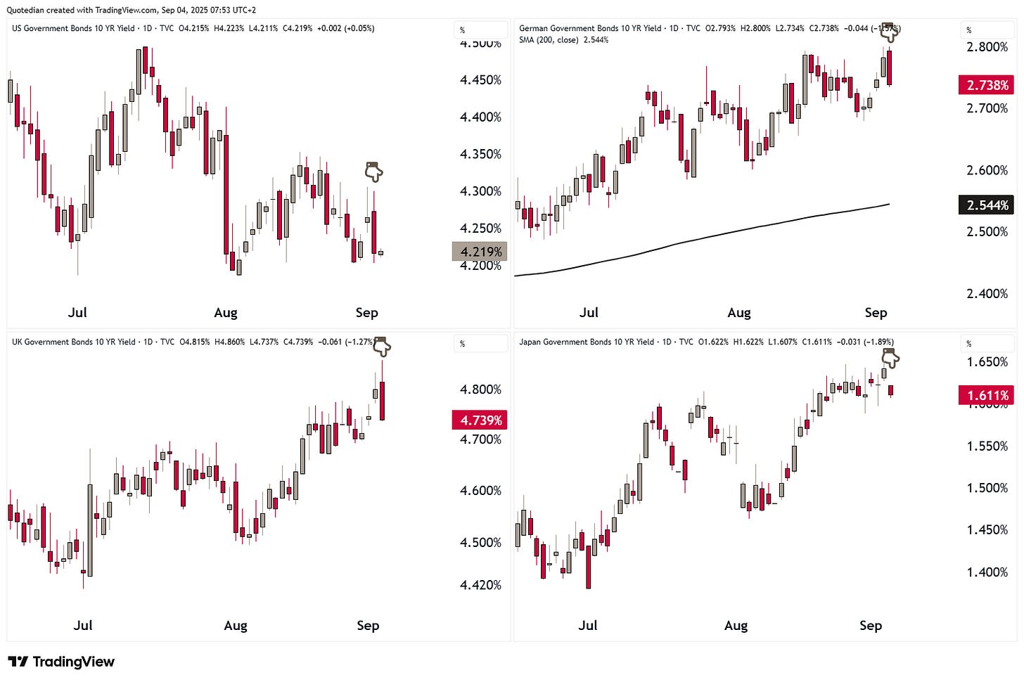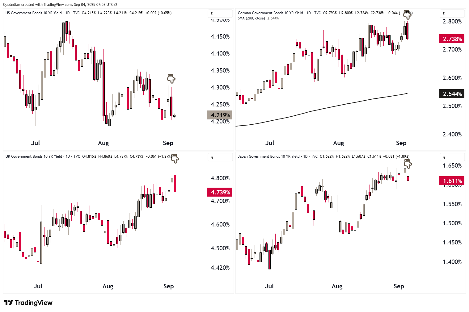 Bond markets continue to be in focus, with yesterday bringing a slight relief after a weak job numbers reading (JOLTS) further increased the odds for the Fed to resume its easing cycle. Major government bond markets all saw their yields drop on the day,