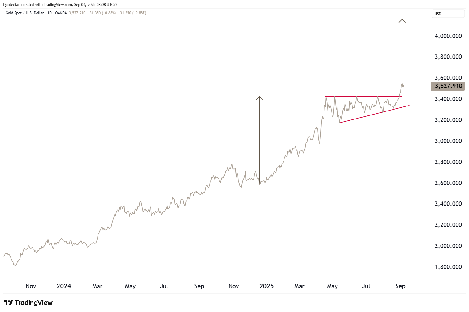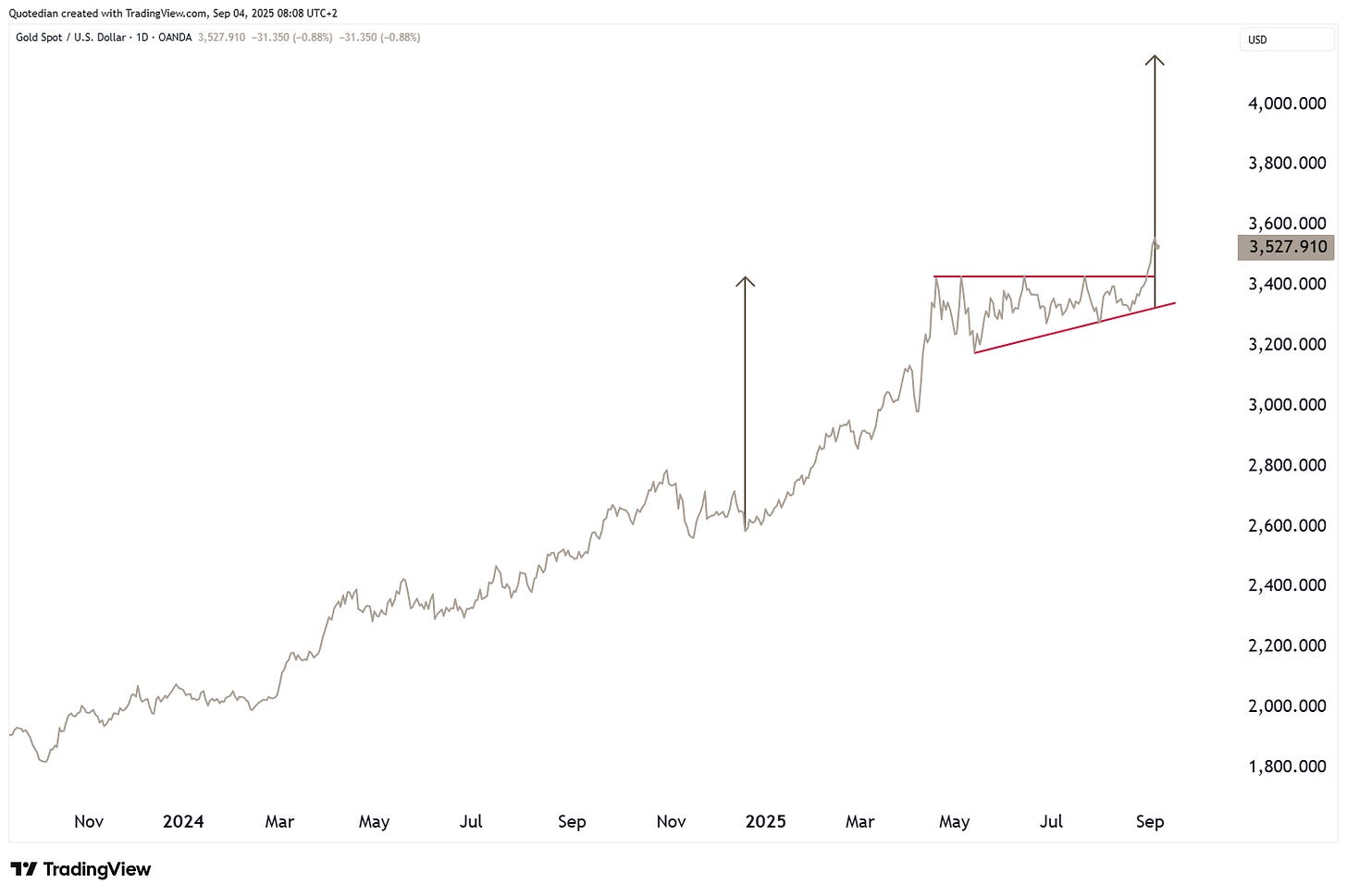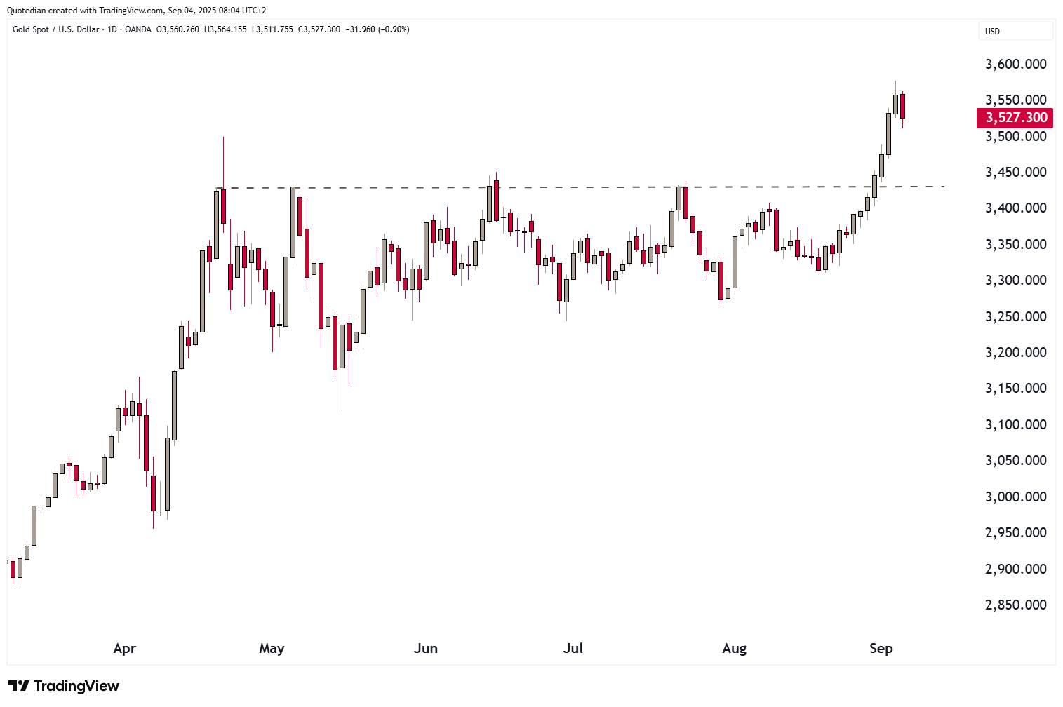 Gold had its seventh consecutive up day, making its longest winning streak since March 2024: