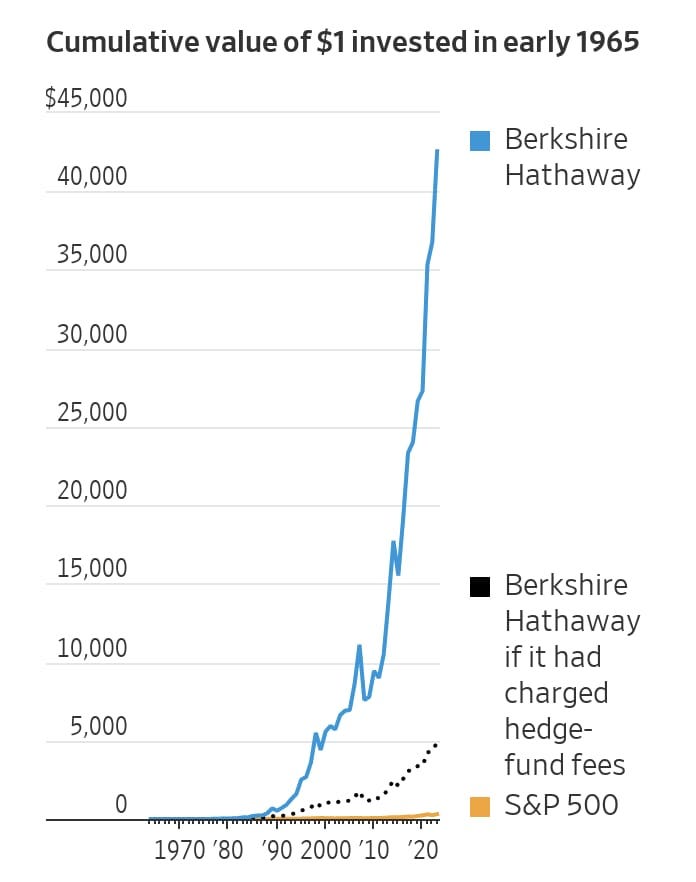 A lot of ink has been spilt regarding the annual Berkshire Hathaway meeting, which took place as usual in Ohama last Saturday, and to which thousand of disciples flocked. Why such a following? Weil, If you had invested $1,000 in the S&P 500 in 1965 when Warren Buffett started at Berkshire Hathaway, you would have about $300,000 today. If you had bought Berkshire instead, you’d have more than $42.5 million. Today’s Chart of the Day (source: WSJ) is fascinating in that context!