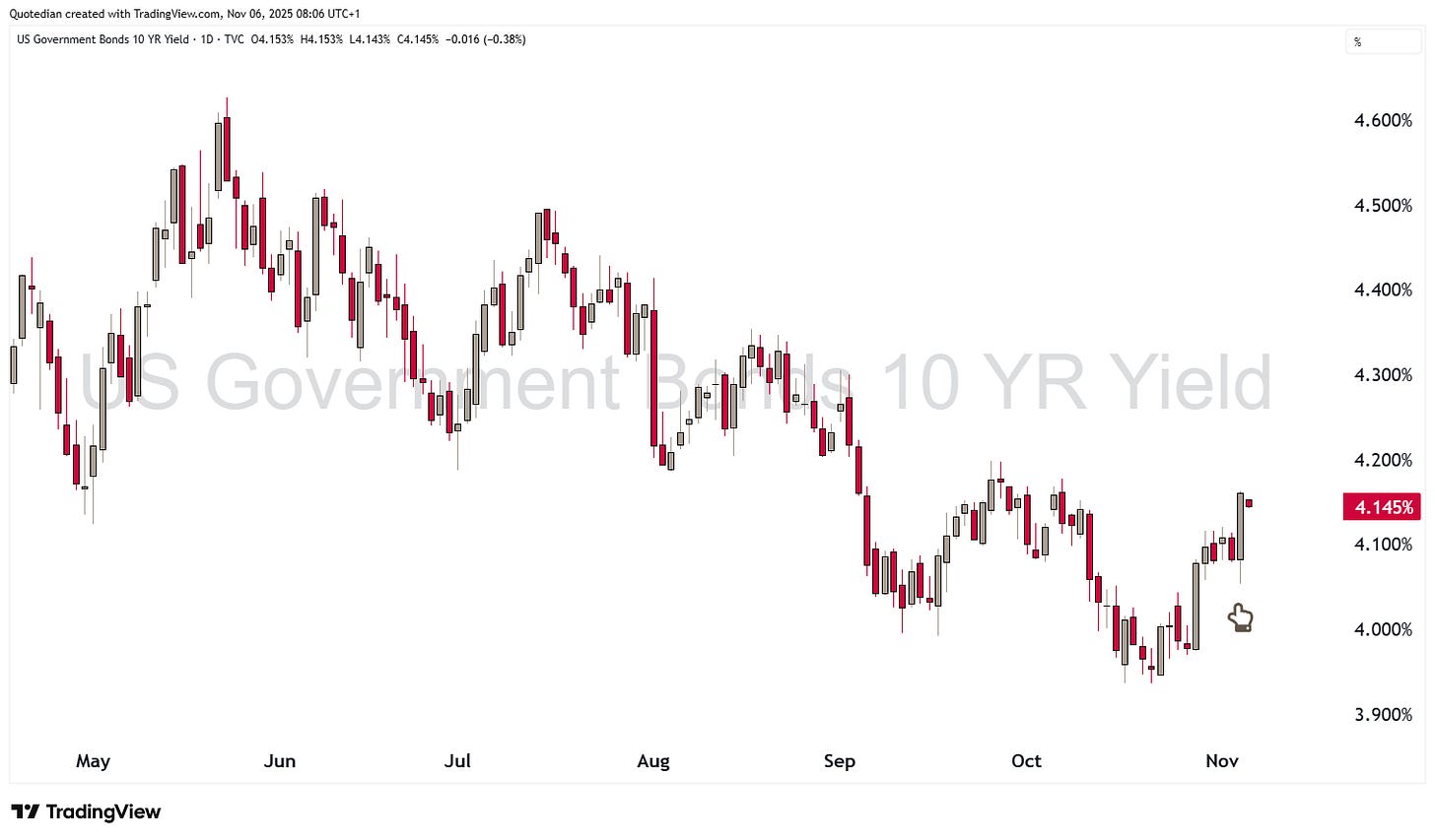 That move came on the back of the US Supreme Court meeting to consider whether Trump’s tariffs are unconstitutional. The judges asked Trump’s lawyer questions that suggested they are leaning toward ruling against Trump’s tariffs. This sent bond yields higher since the Treasury would no longer collect those customs duties and would have to refund what was already collected. Watch this one closely.