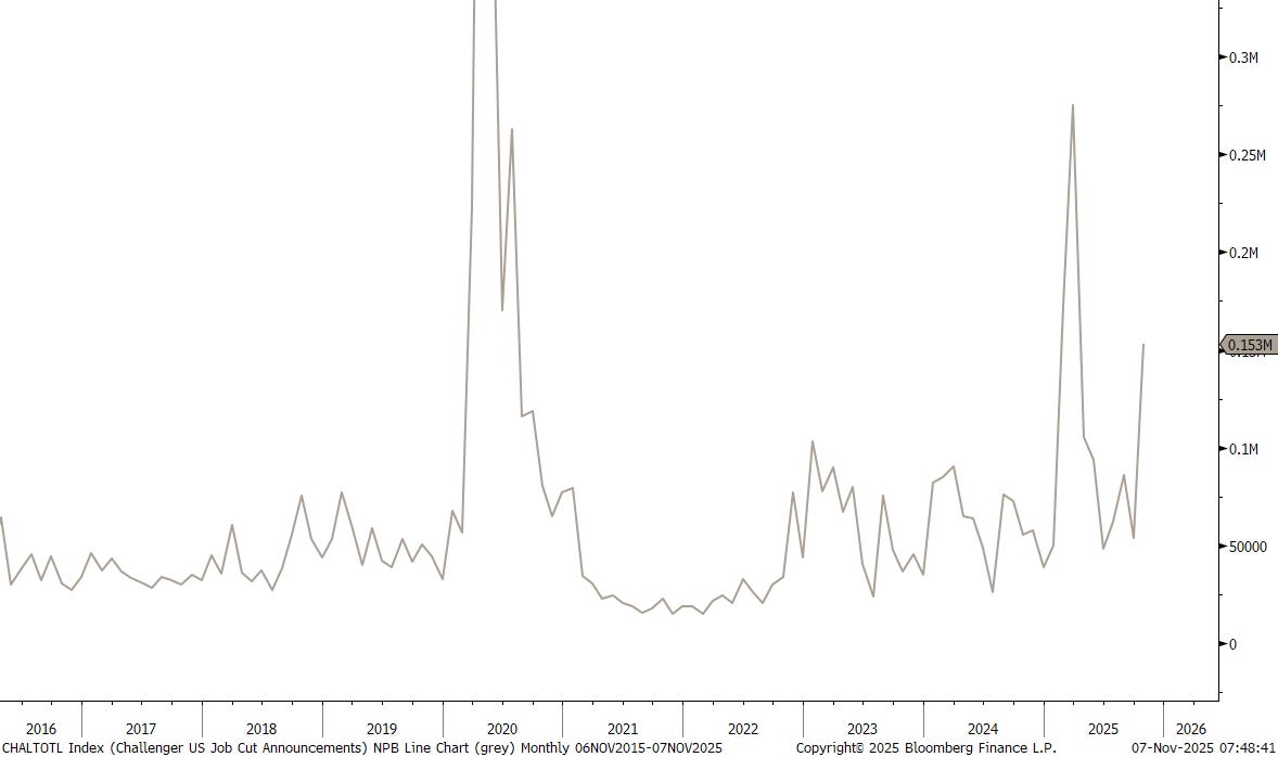 Indeed did Challenger report an increase of nearly 180% in job cuts, though this is a a pretty volatile number anyway: