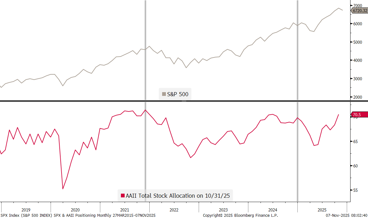This, as the AAII reported one of the highest equity allocations in recent history by the associations members:
