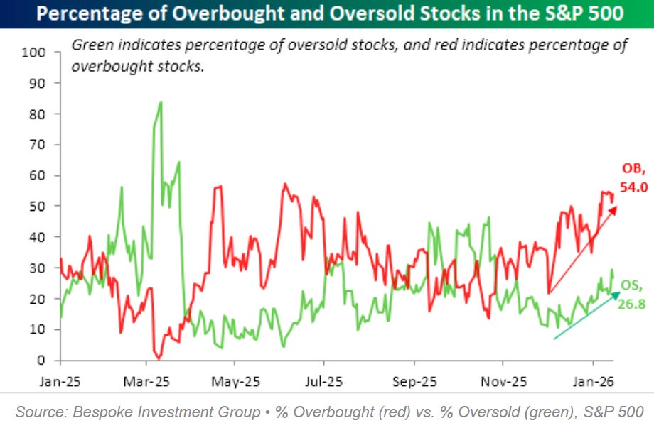 it is rare to see that the number of overbought AND oversold stocks are BOTH moving higher: