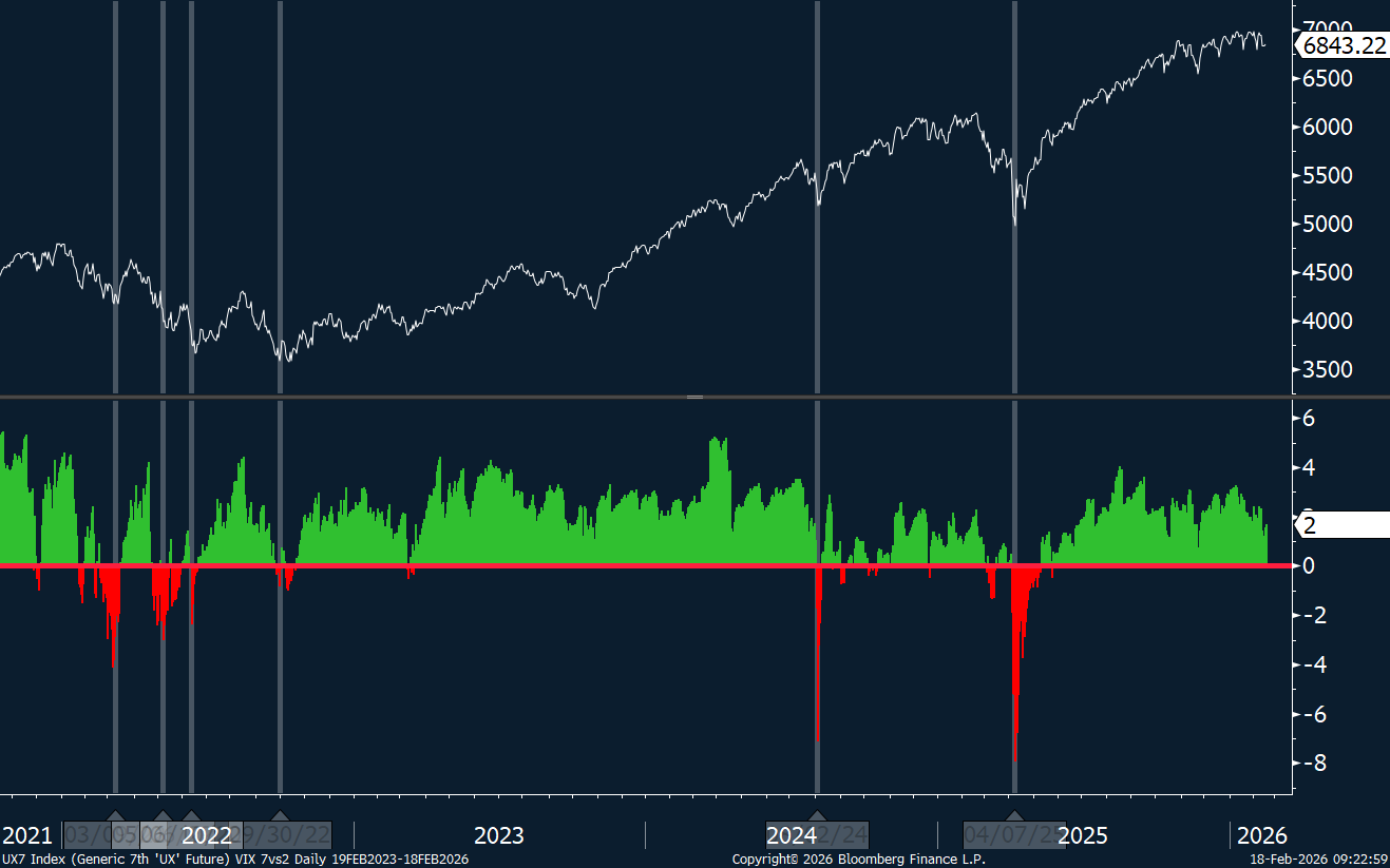 but without the curves (below the VIX) having inverted yet, which is the usual sign of an impending market bottom:
