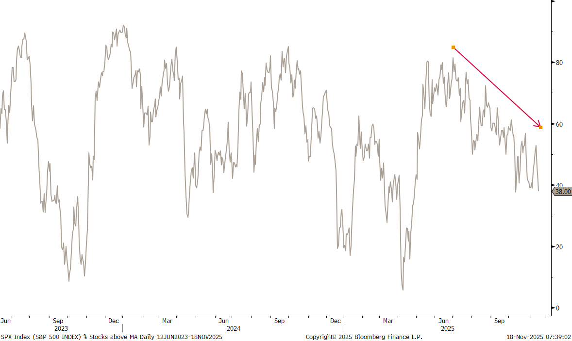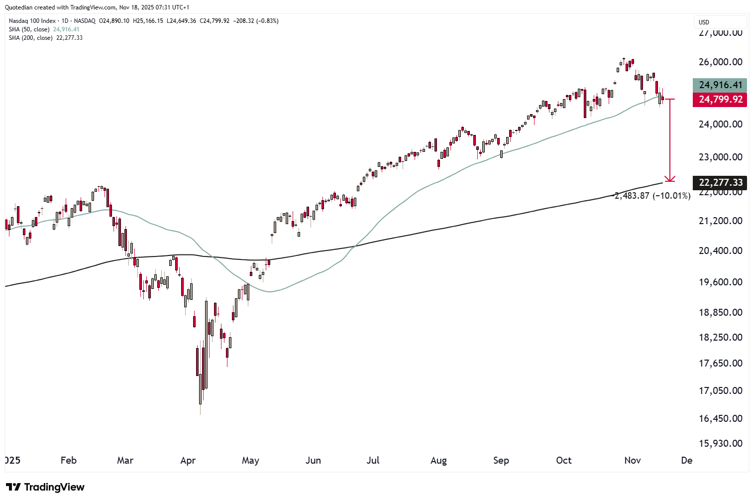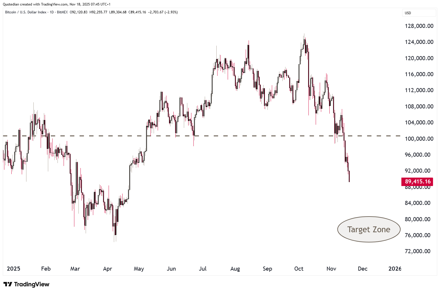 Now, since Bitcoin broke its 100k support level we have been calling for a price target anywhere between 80k and 75k. This seems to be rapidly manifesting itself, as Bitcoin trades below 90,000 for a first time since May: