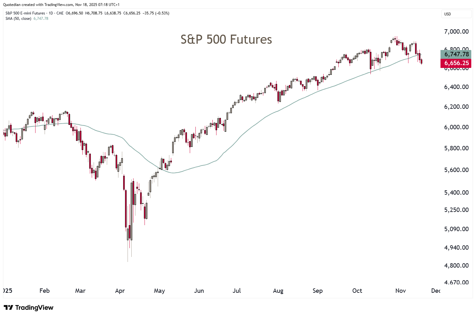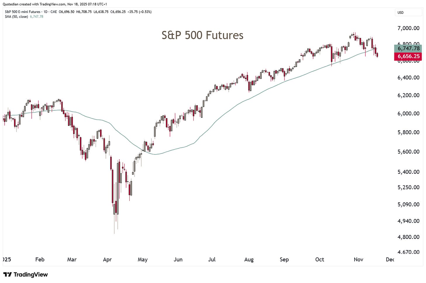 Not all is lost if the index can reclaim that MA quickly again, though the index’s futures drop of an additional half percentage point this early Tuesday is not helping: