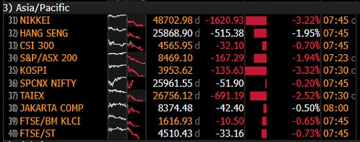 Anyway, the stock market is not liking it either, with the Nikkei 225 retreating three percent this morning, setting the tone for a chilly Asian session this Tuesday: