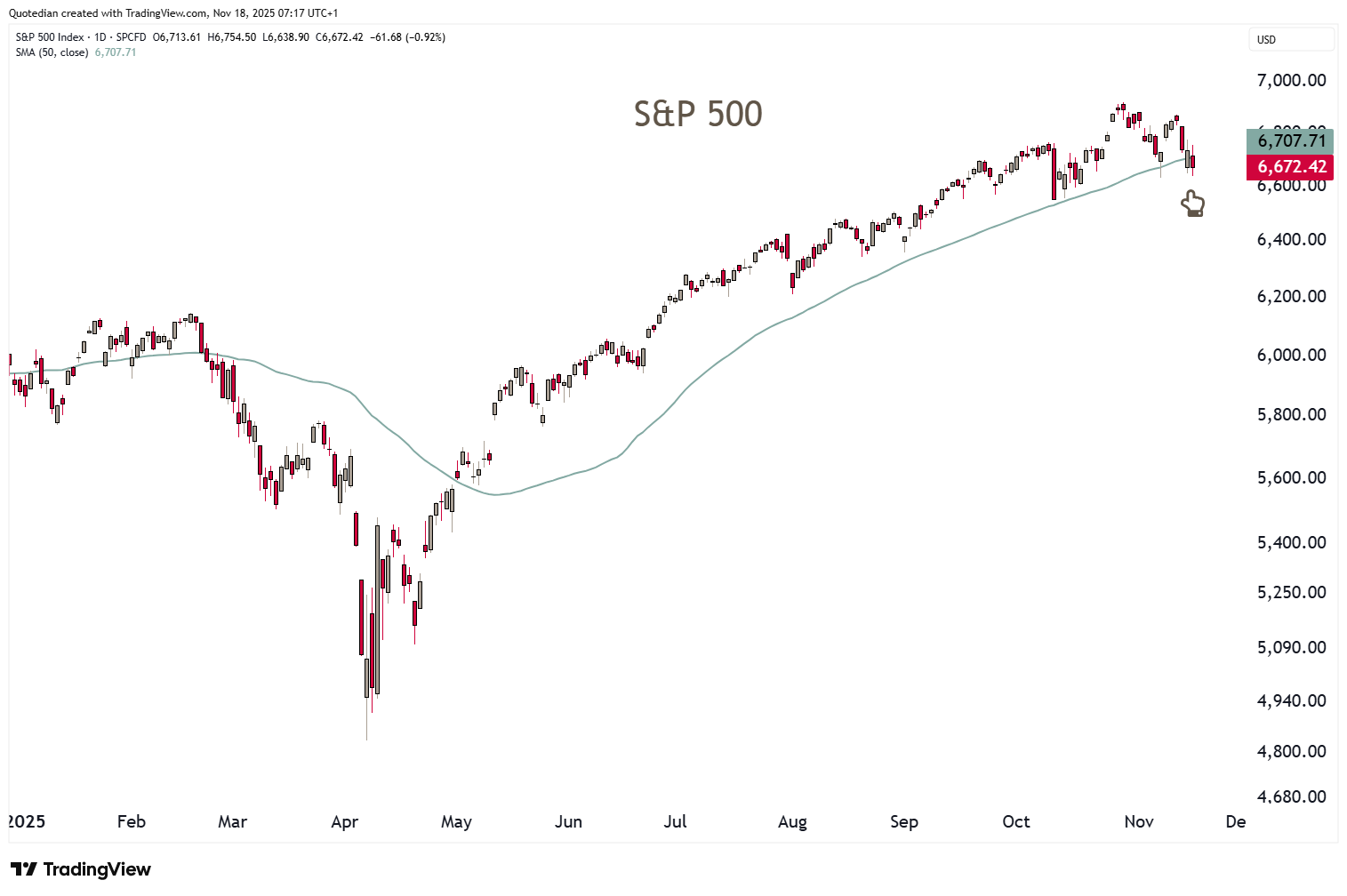 Yet, the S&P’s 90 basis points drop yesterday made the index close below its 50-day moving average (MA), a source of good support over the past seven months, for the first time since early March of this year: