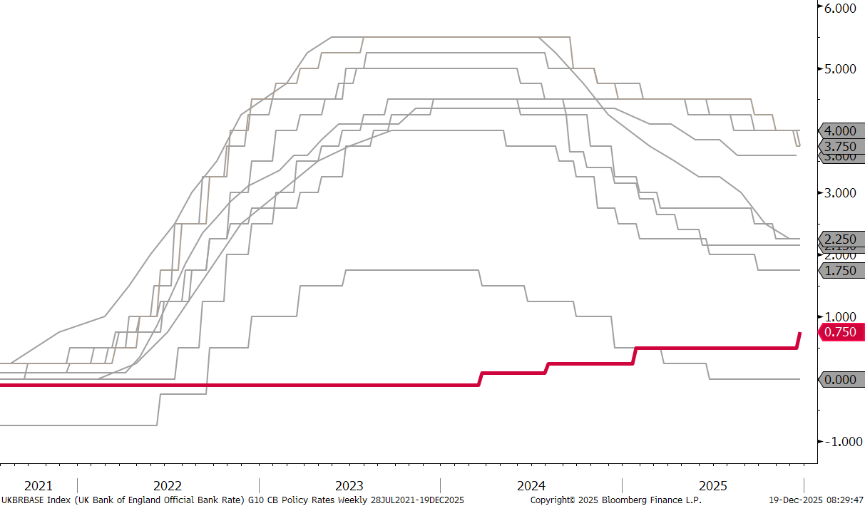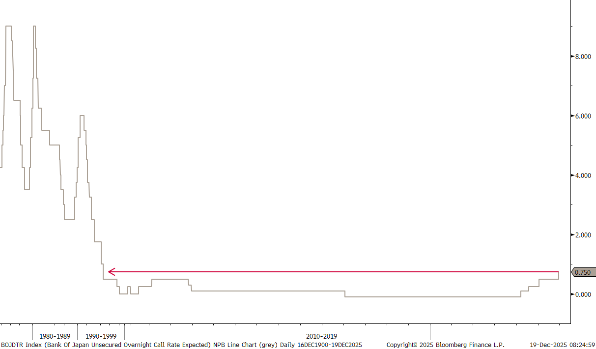 In Japan, the BoJ announced this dawn that they are lifting their key policy rate by a quarter percentage point to 0.75%, its highest level in over 30 years: