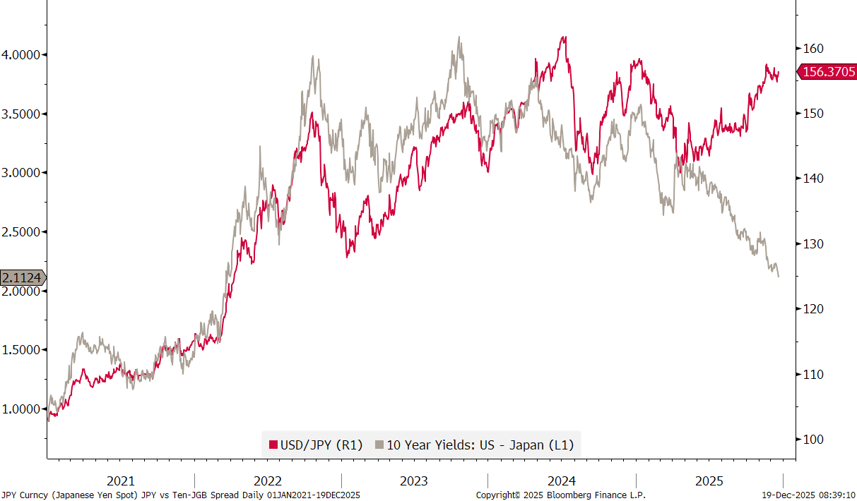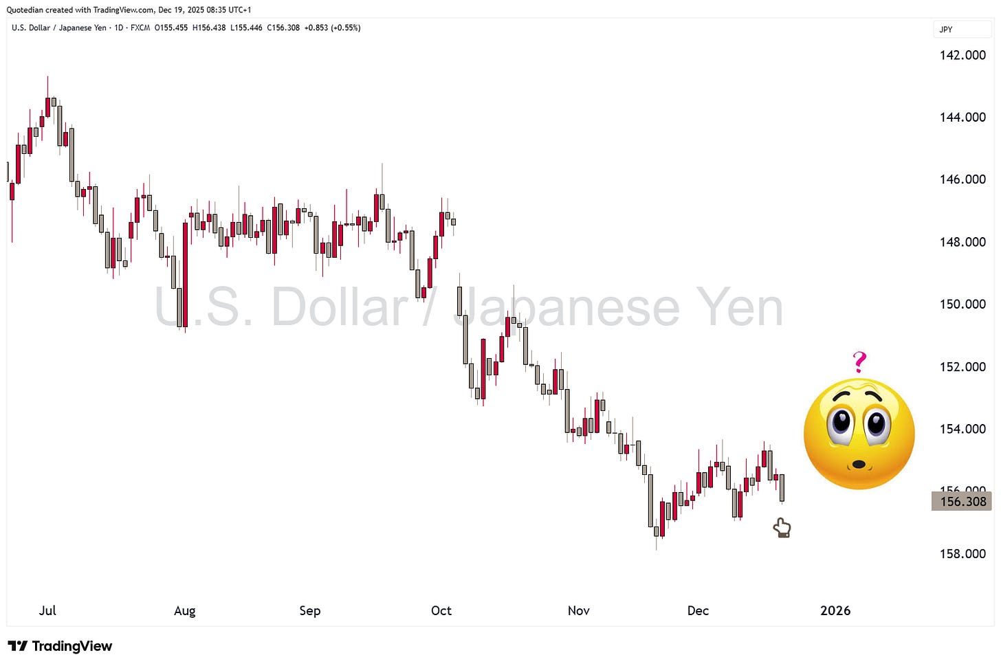 One side (of at least three or four sides) seems to be wrong here. Either the JPY has to increase sharply, or US rates are completely wrong. Or a big carry trader (whale size) will blow up soon. Or a bit of all. This will be ‘fun’ to watch unwinding in 2026.