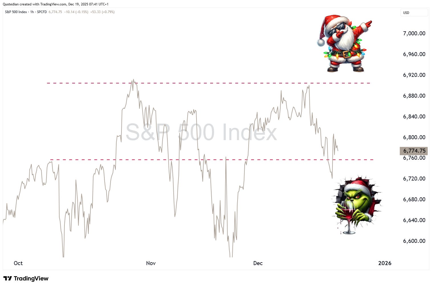 Still, in our Grinch vs. Santa Claus chart the S&P was able to close in the “tie” zone again,