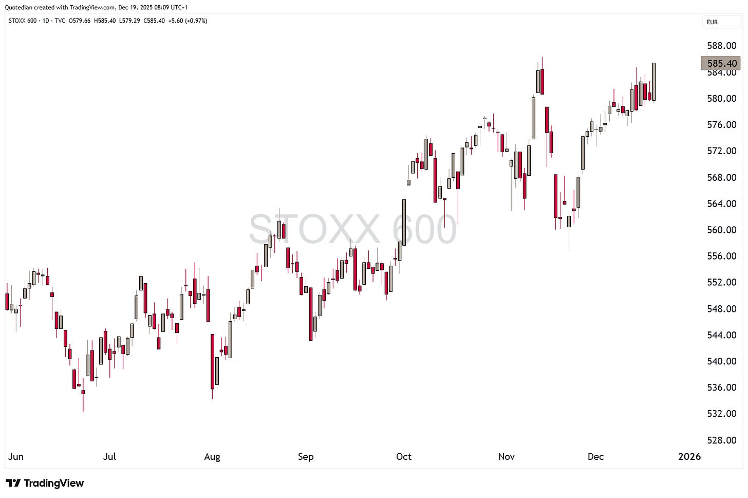 European markets (SXXP) had a much friendlier session, with the STOXX 600 Europe index closing at a new all-time high: