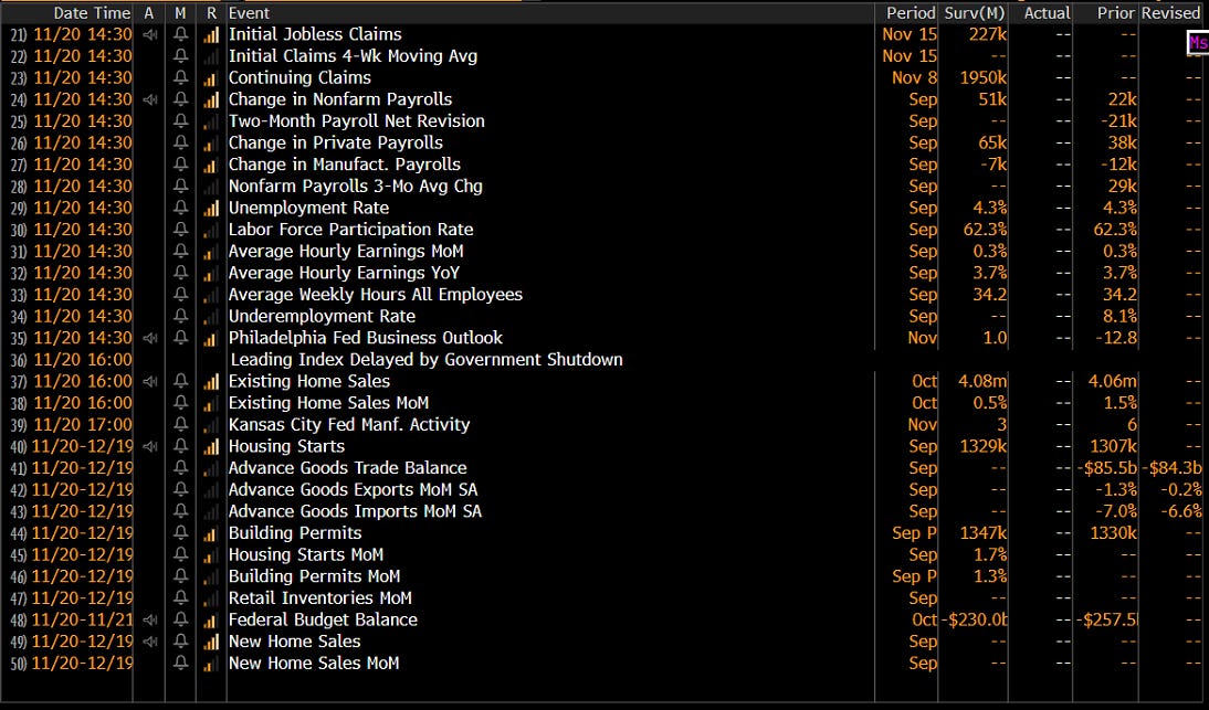 As I mentioned in yesterday’s note, the US government is playing catch-up with producing economic data after the record-long shutdown and a heap of data will reported today and tomorrow. This is today’s agenda: