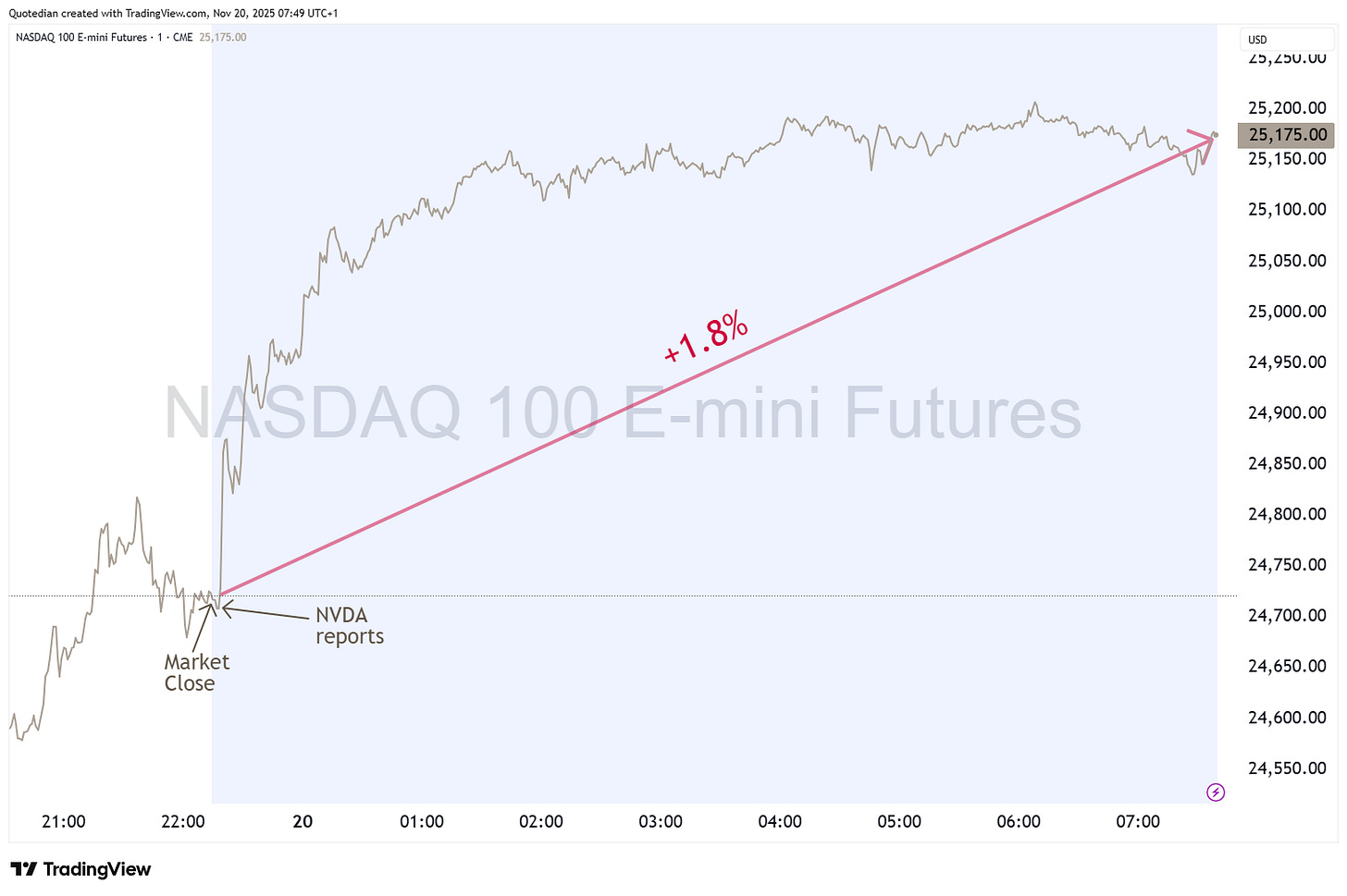 and also enough to lift the entire market (Nasdaq 100 in this case) by nearly two percent: