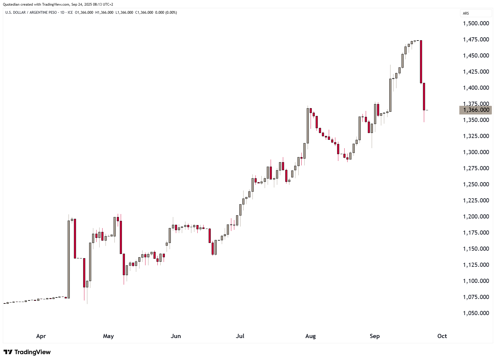 Little to report from the currency realm, maybe with the exception of the Argentine Peso, which is living through a partial recovery as Milei is waiting for a bailout in Washington: