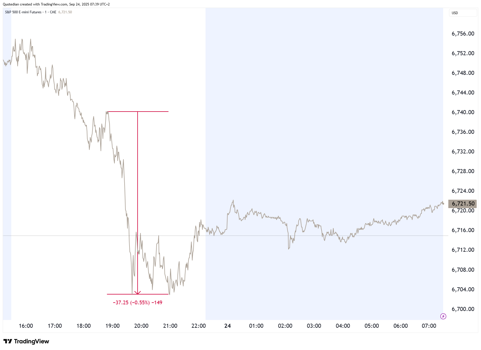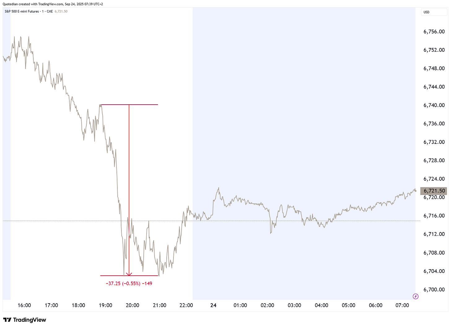 Back in 1996, stocks dropped about three percent intraday after Greenspan’s remark - in the 2025 version the S&P 500 gave back about half a percentage point before starting to climb again: