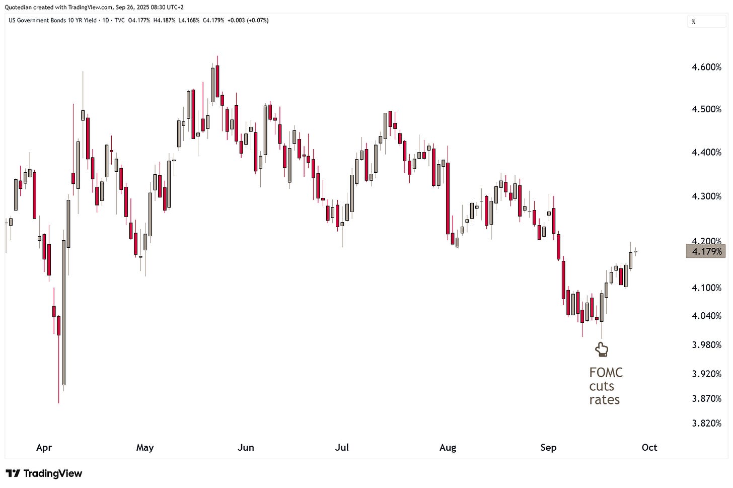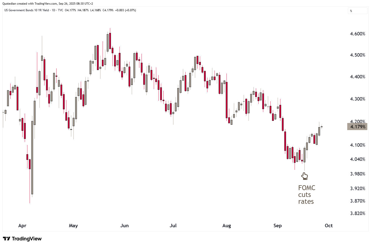 In fixed income markets, bond yields continue to rise. The pivot came rate post the FOMC rate cut and has accelerated further yesterday on the back of the fore-mentioned strong economic data:
