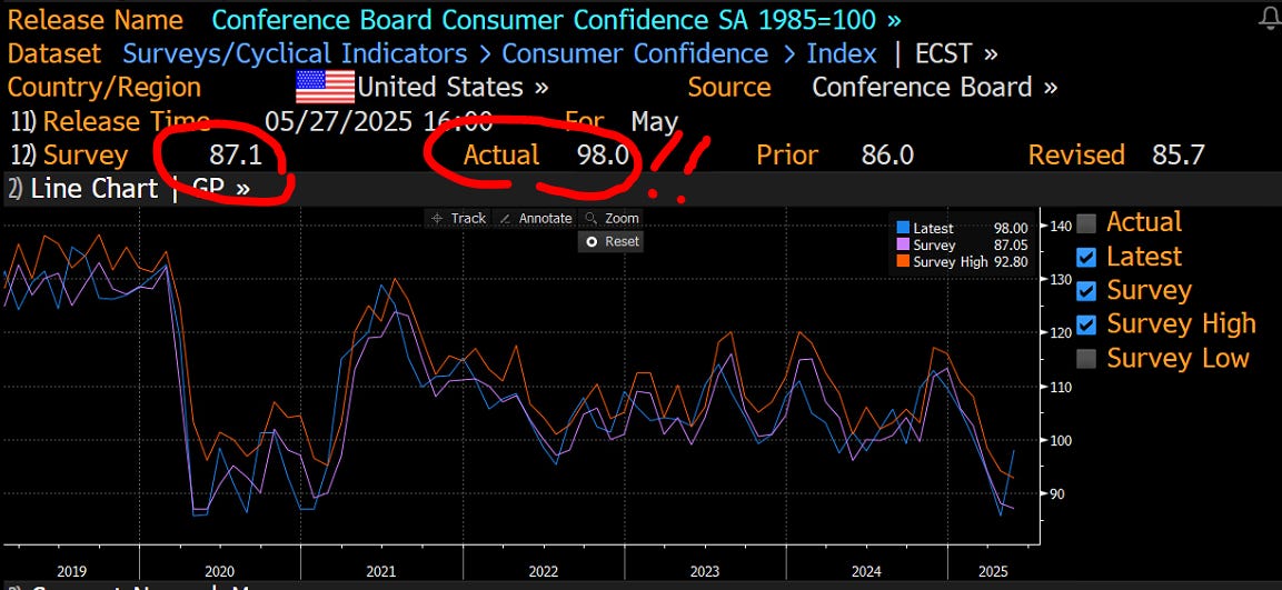 Well, maybe a strong pick-up in consumer confidence - one of the strongest in recent history - also helped stocks in yesterday’s session: