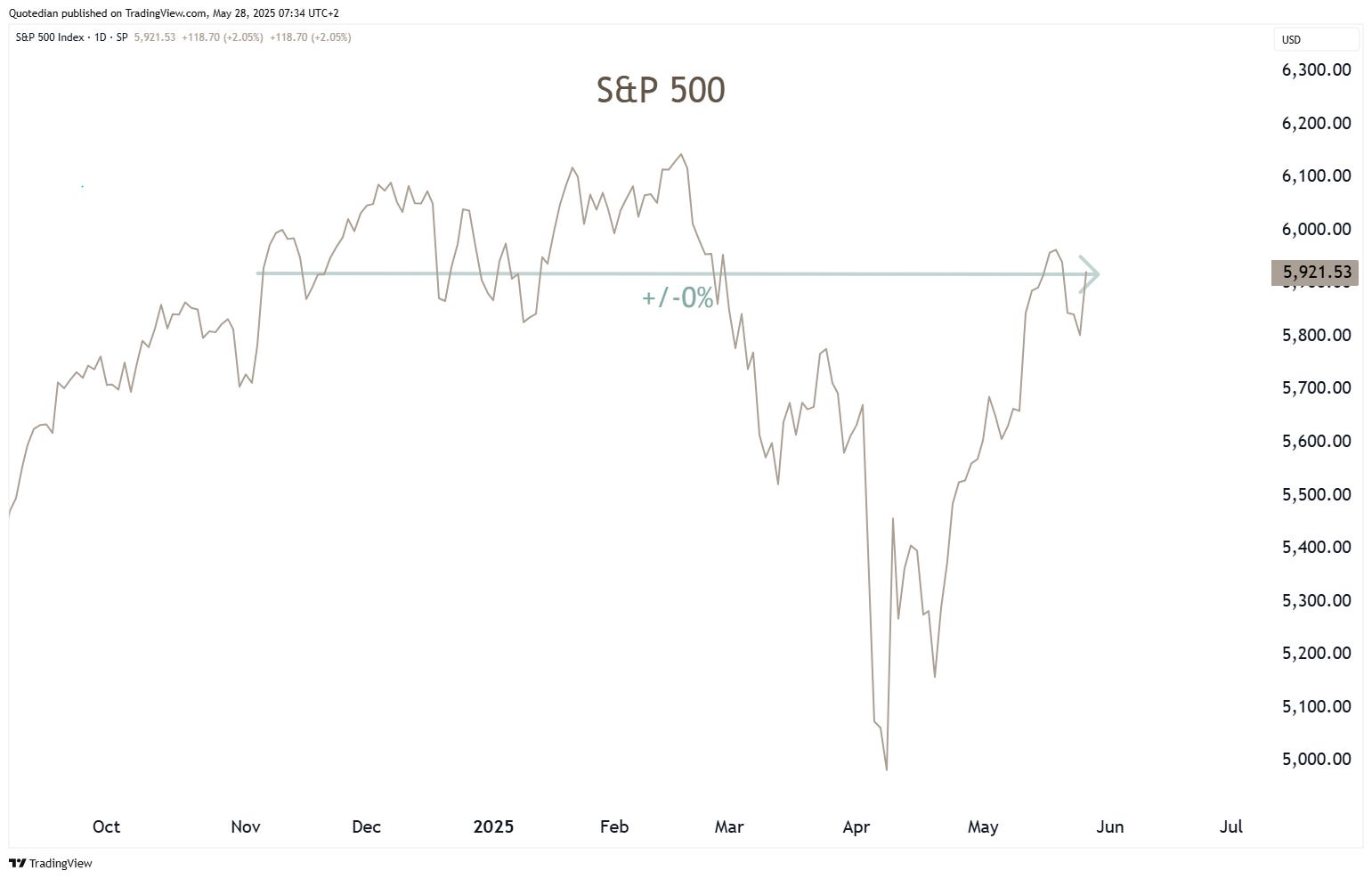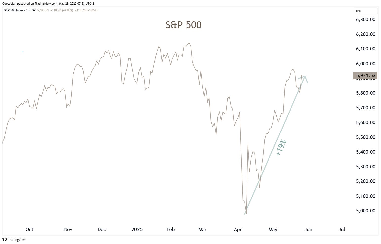 a) that stocks (S&P 500) are up 19% since the early April panic lows?