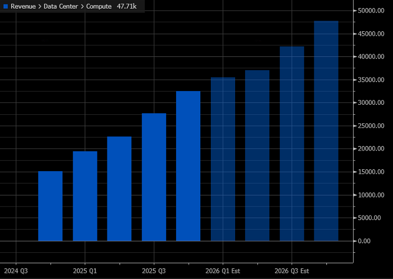 Today, we get the minutes from the last FOMC meeting, but probably more important, after-close earnings reports from HP, Salesforce and the almighty NVIDIA! The graph below shows the expected revenue from Chip sales by NVDA into Q4 of 2026: