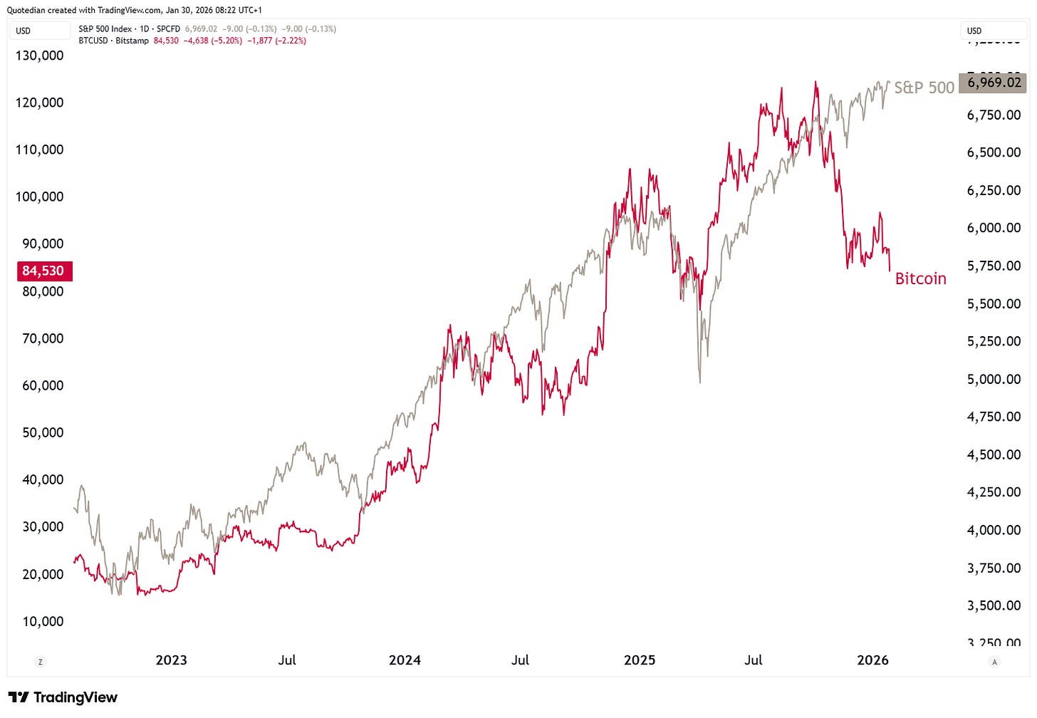 Stocks have held up, but is Bitcoin, a classic risk-on/risk-off tool foretelling the (equity) future?