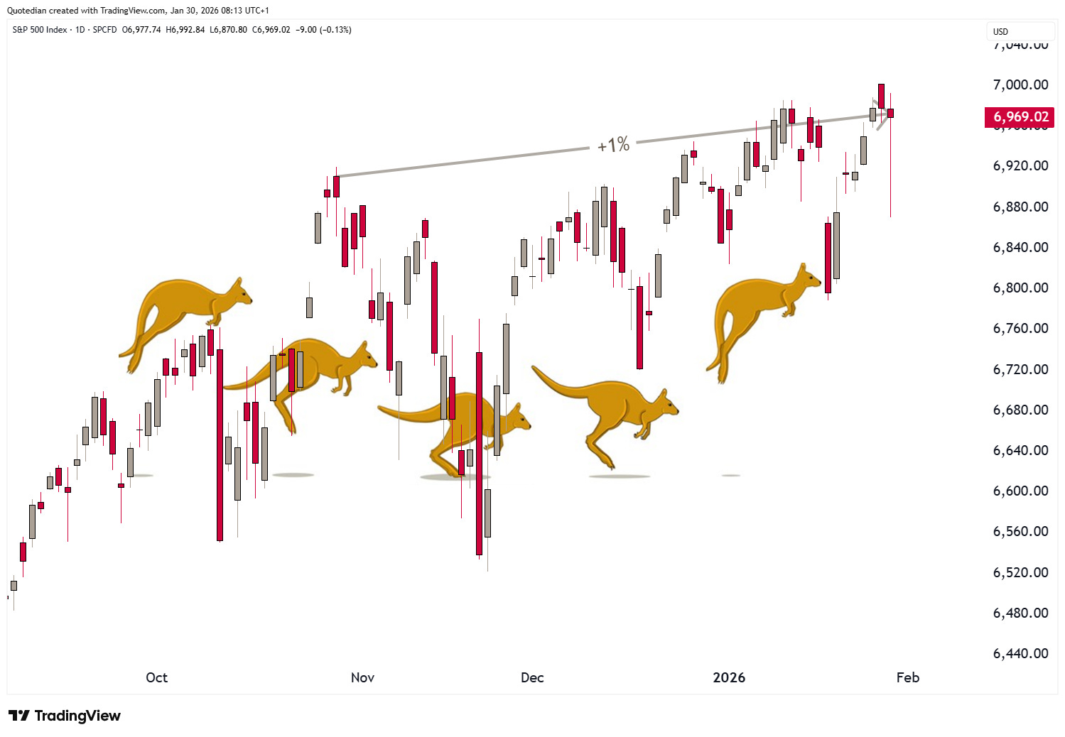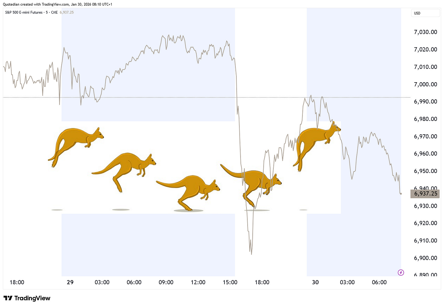 Equity markets, albeit on a much smaller scale, also had their yo-yo or kangaroo momentum over the past two sessions. Hereβs the S&P 500 as representative of this asset class: