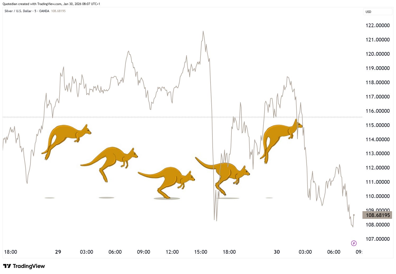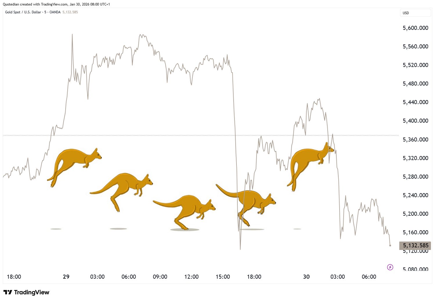 Some of the recently more runaway asset classes, such as for example the precious metals complex, have gone over the past 48 hours or so in full yo-yo (aka Kangaroo) mode. Point-in-case: Gold!