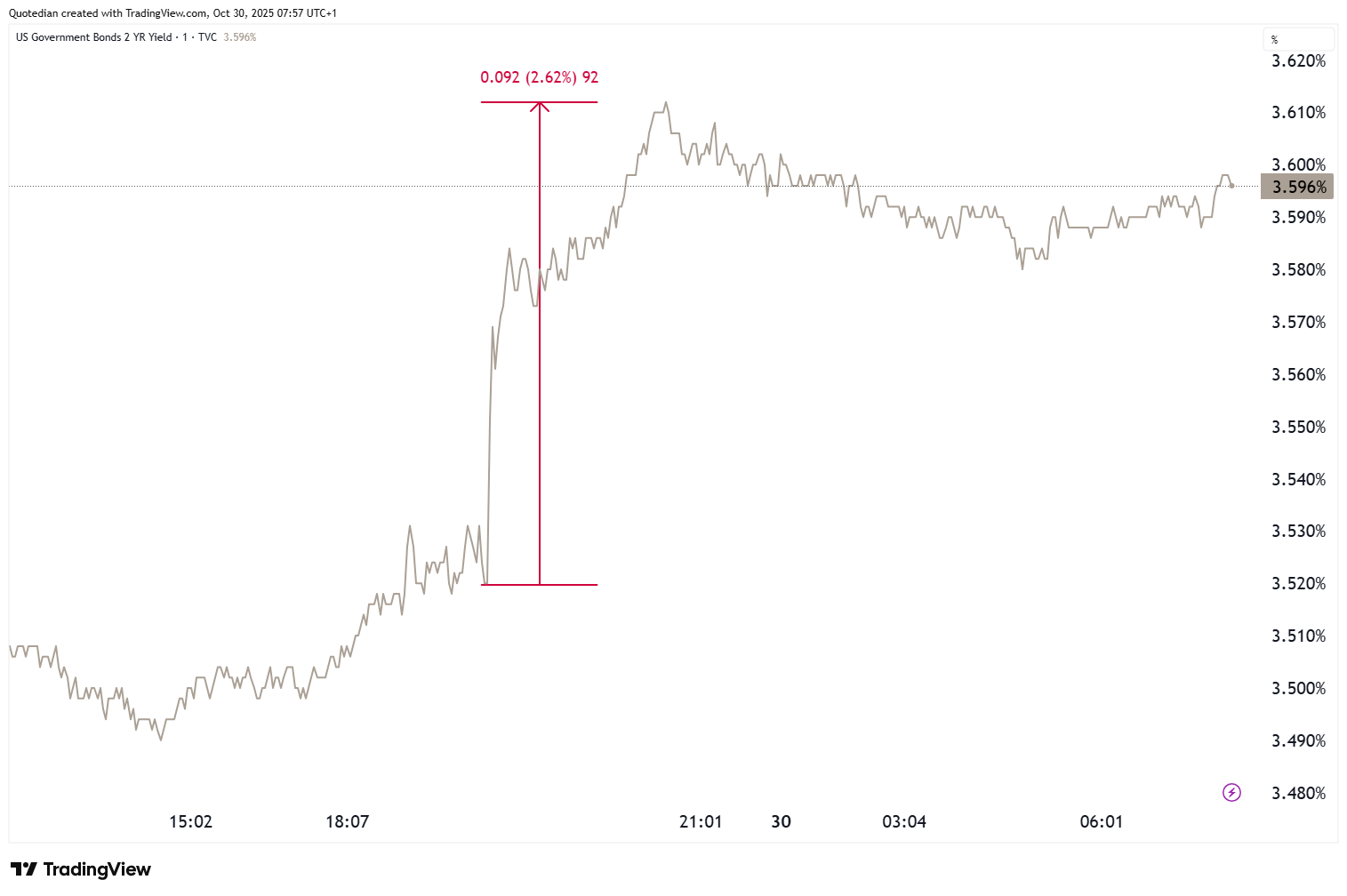 The previously pretty complacent bond market got rattled awake, especially at the more interest policy sensitive short-end of the curve. Here’s the 2-year Treasury yield chart: