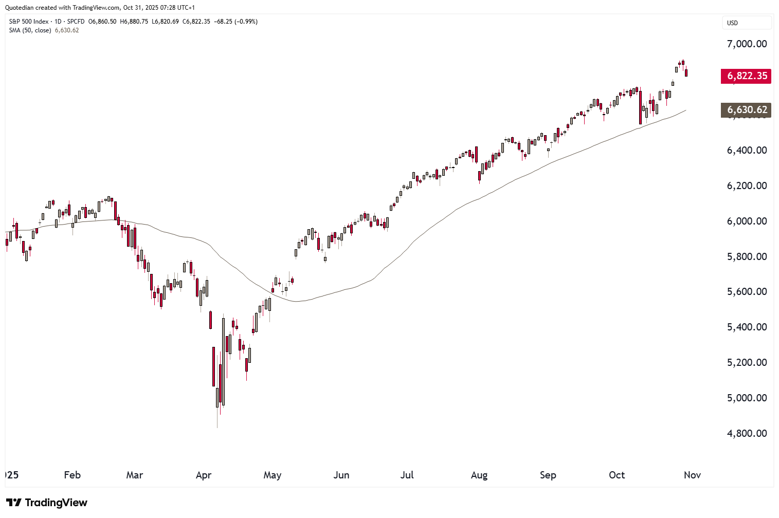 With this I was of course referring to a possible impending correction on equity markets, as ‘things’ seemed to be getting a bit stretched. Not least, as the S&P 500 has been above its 50-day moving average for the third longest streak over the past thirty years as also shown in yesterday’s chart-of-the-day: