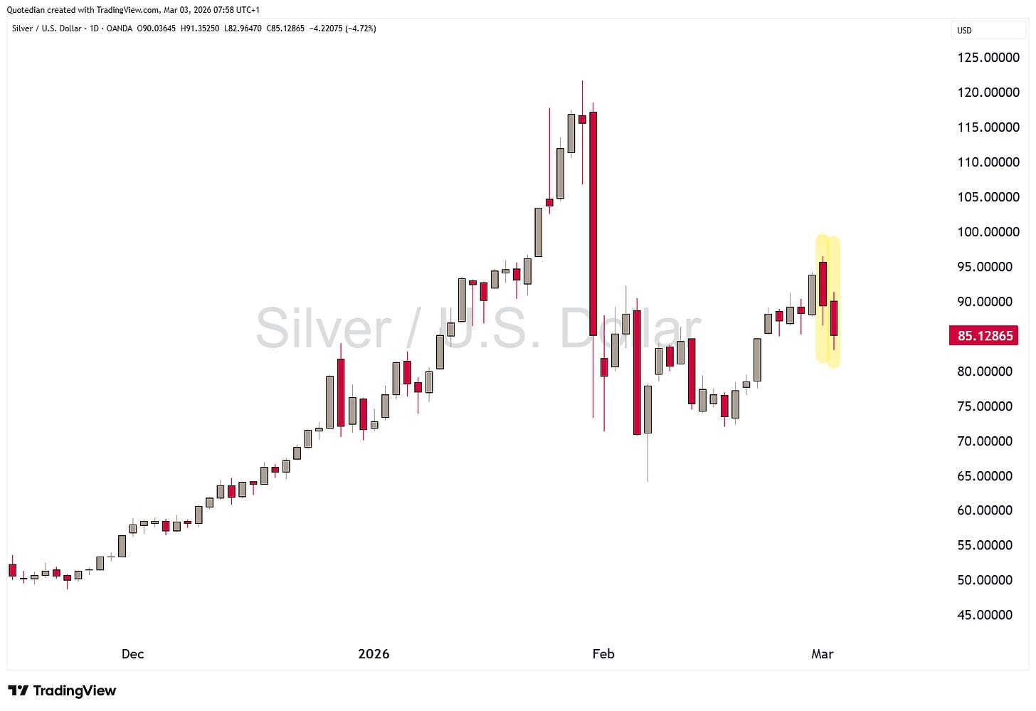Also moving … Silver, where maybe the industrial aspect is suddenly "shining “ (ha! what a silly pun!) through more than its precious metal affiliation: