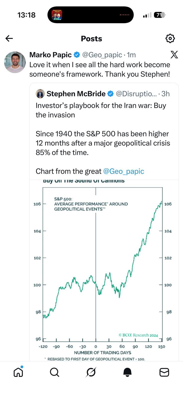 For starters, the last nearly twenty years of (equity) market sell-offs, especially with relation to geopolitical events, have taught us to “fad them” aka “BTFD”. One of my all-time favourite analysts (no, no cheek in tongue, really adore the guy) cheerleaded that notion yesterday in X: