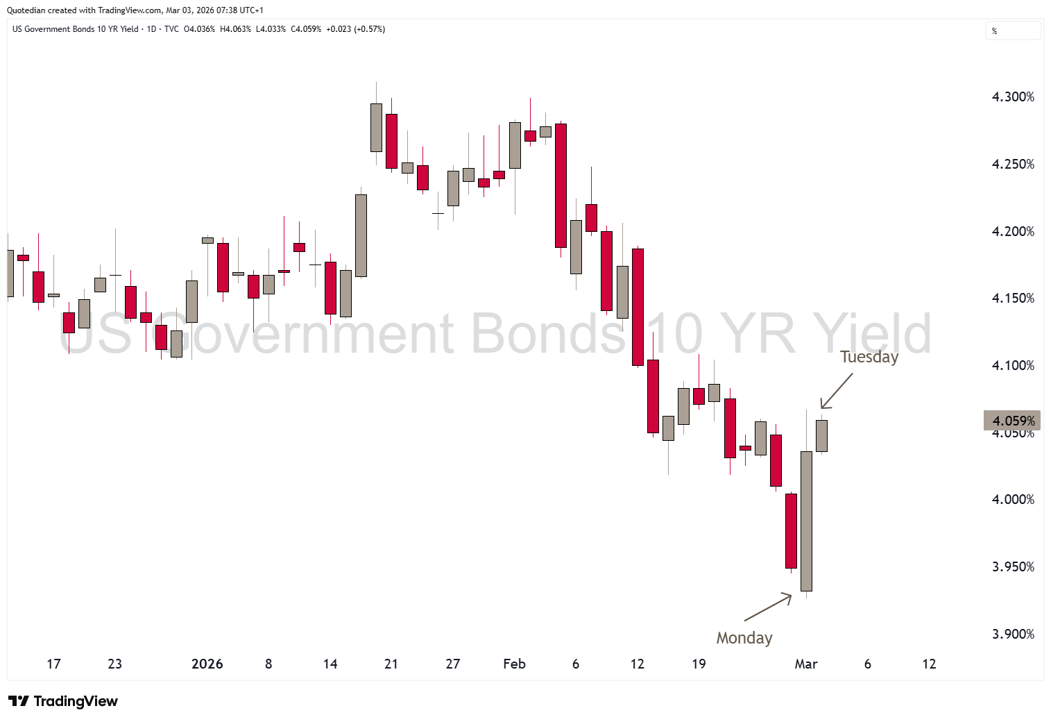 WHAT IF … the failure of the US 10-year treasury bonds not only meaningfully fail to gain territory, as they usually do during major global geopolitical events, but even see a more-than-notable sell-off is a tell sign?