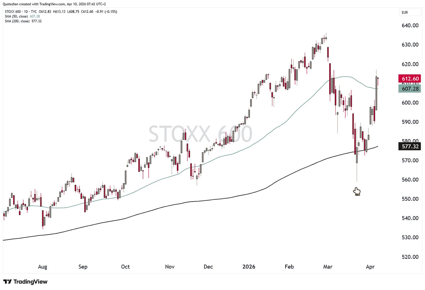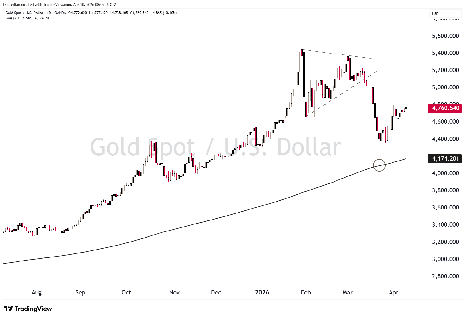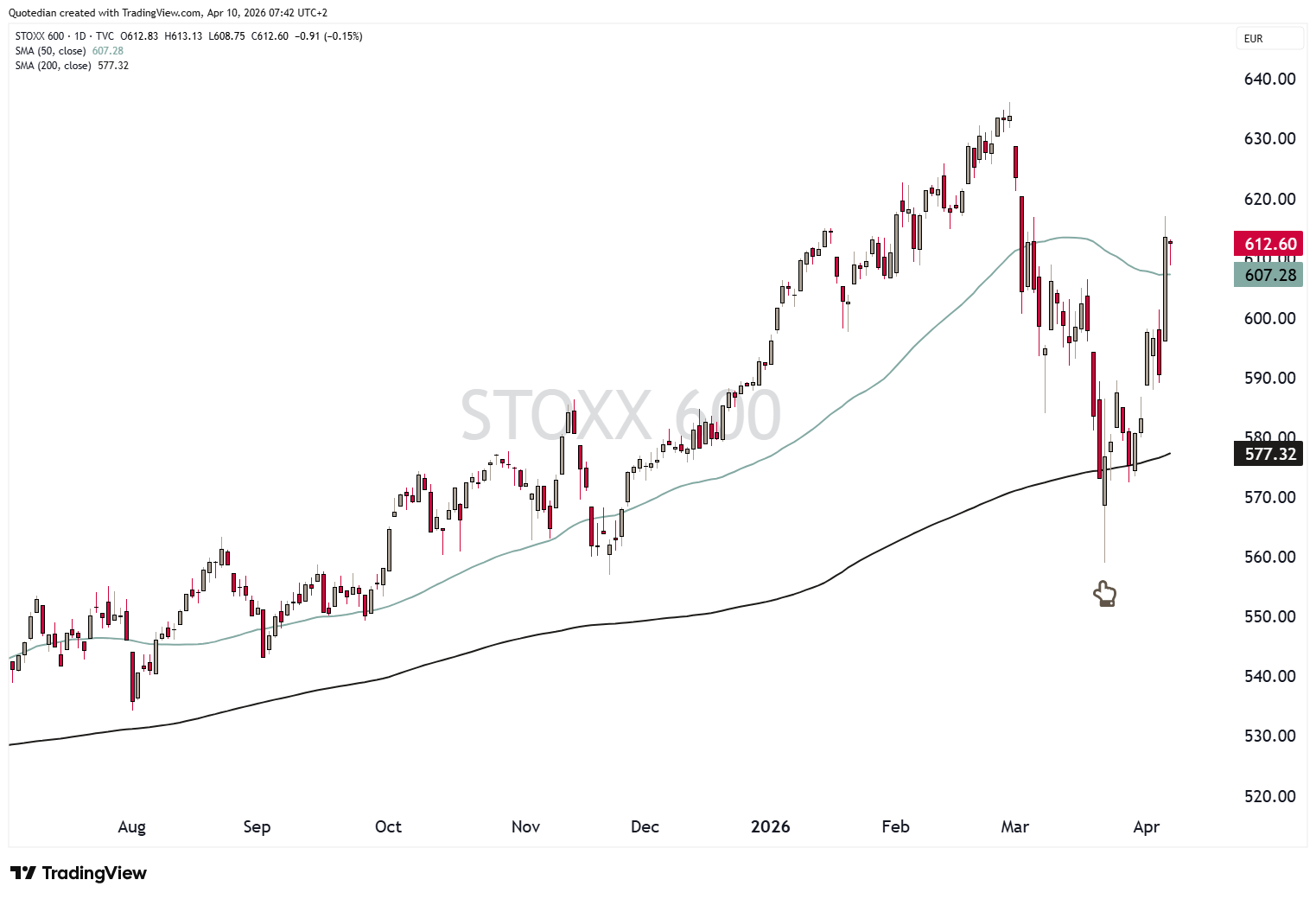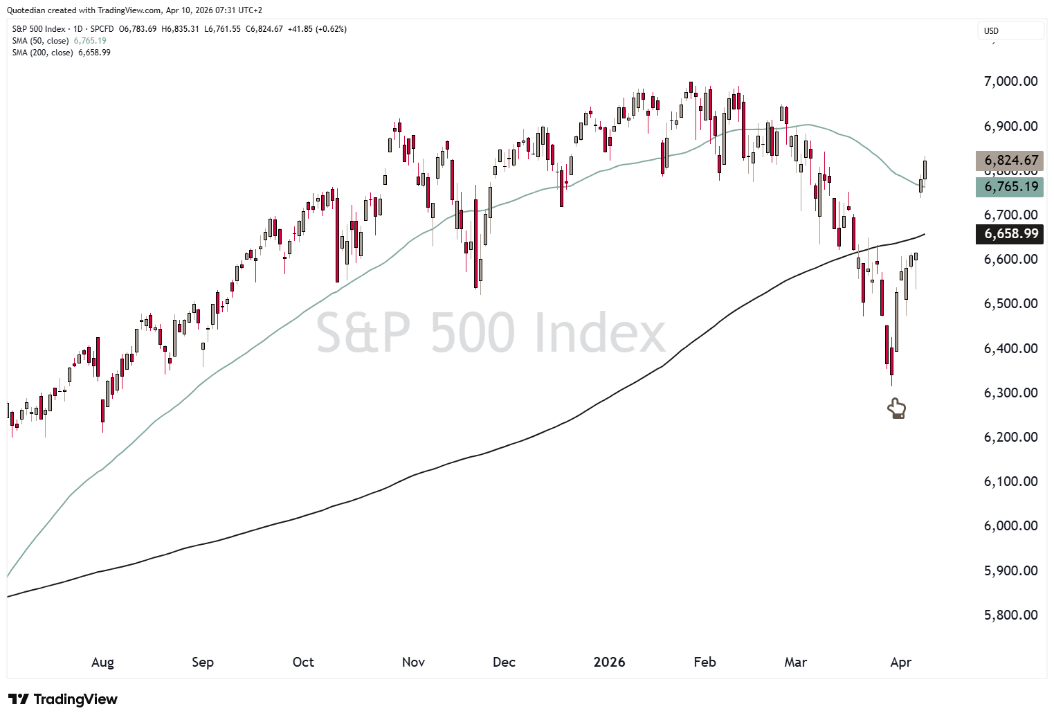 In equity markets, the S&P 500 has bottomed for the medium-term on Monday a week ago (30.3.) and with the price now firmly back above the 200-day AND the 50-day moving average, chances for reaching a new ATH in the near future have increased: