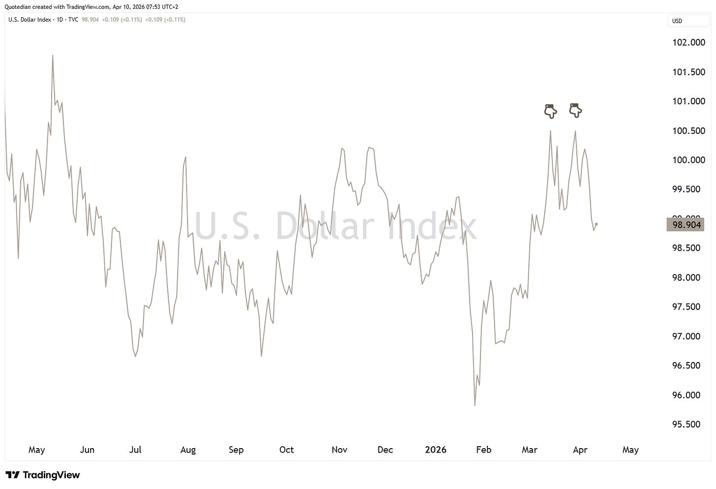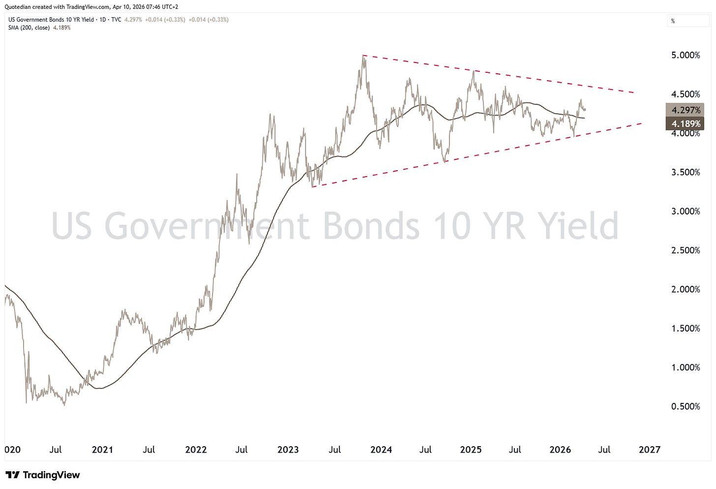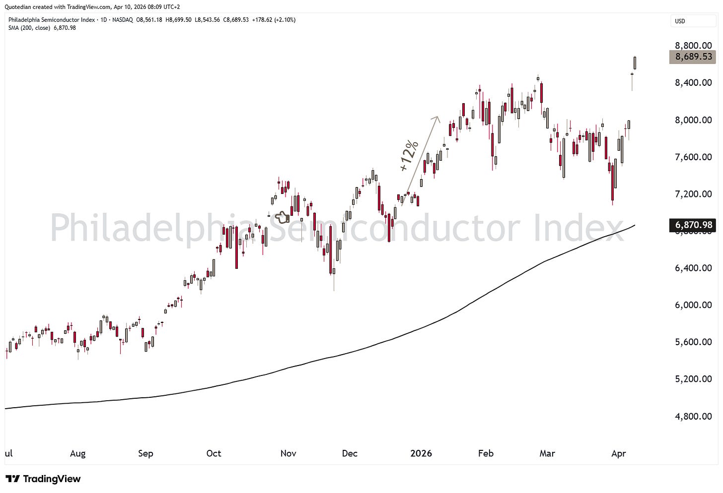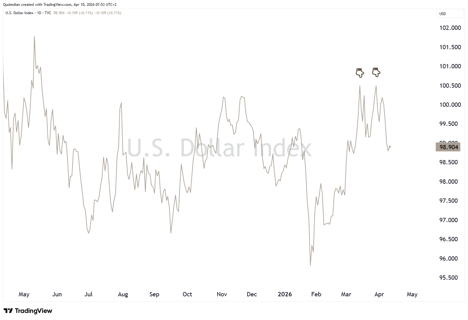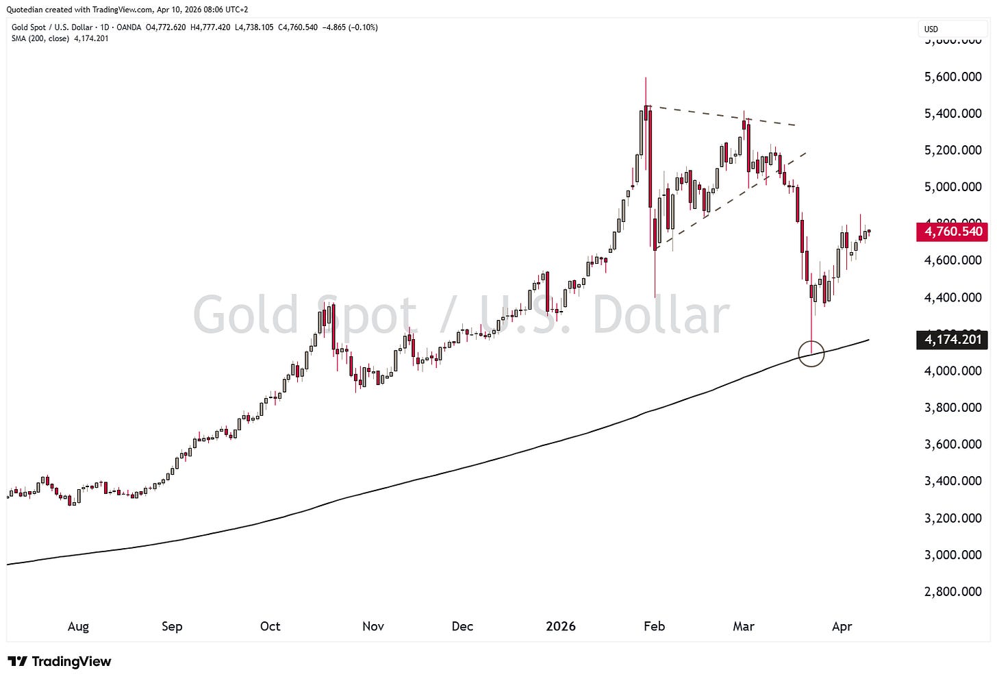 In equity markets, the S&P 500 has bottomed for the medium-term on Monday a week ago (30.3.) and with the price now firmly back above the 200-day AND the 50-day moving average, chances for reaching a new ATH in the near future have increased: