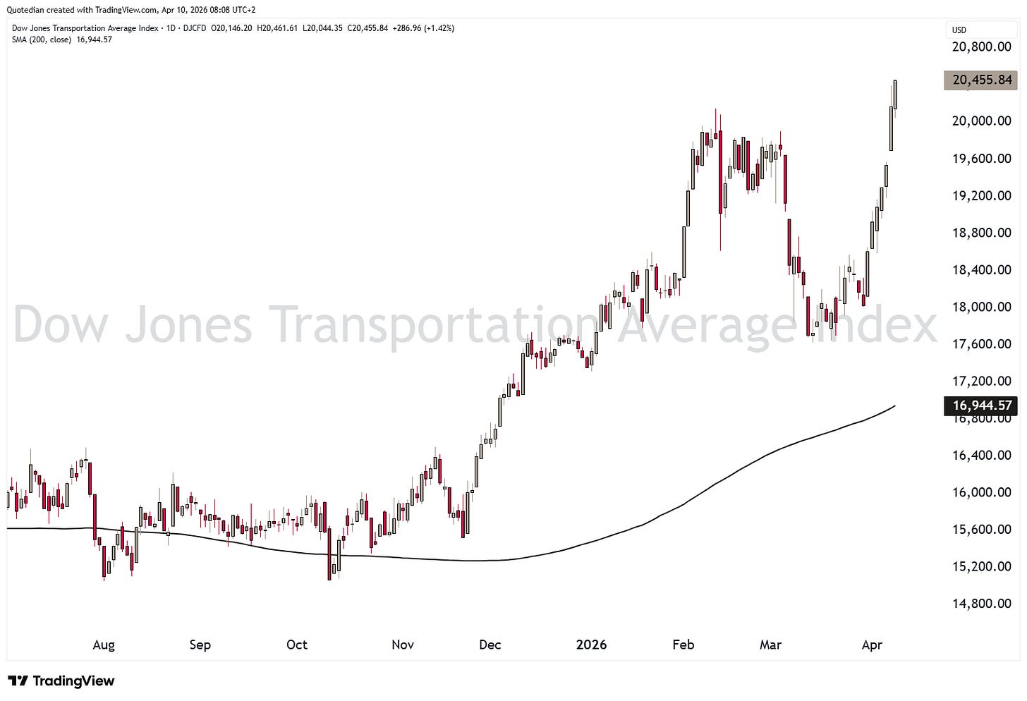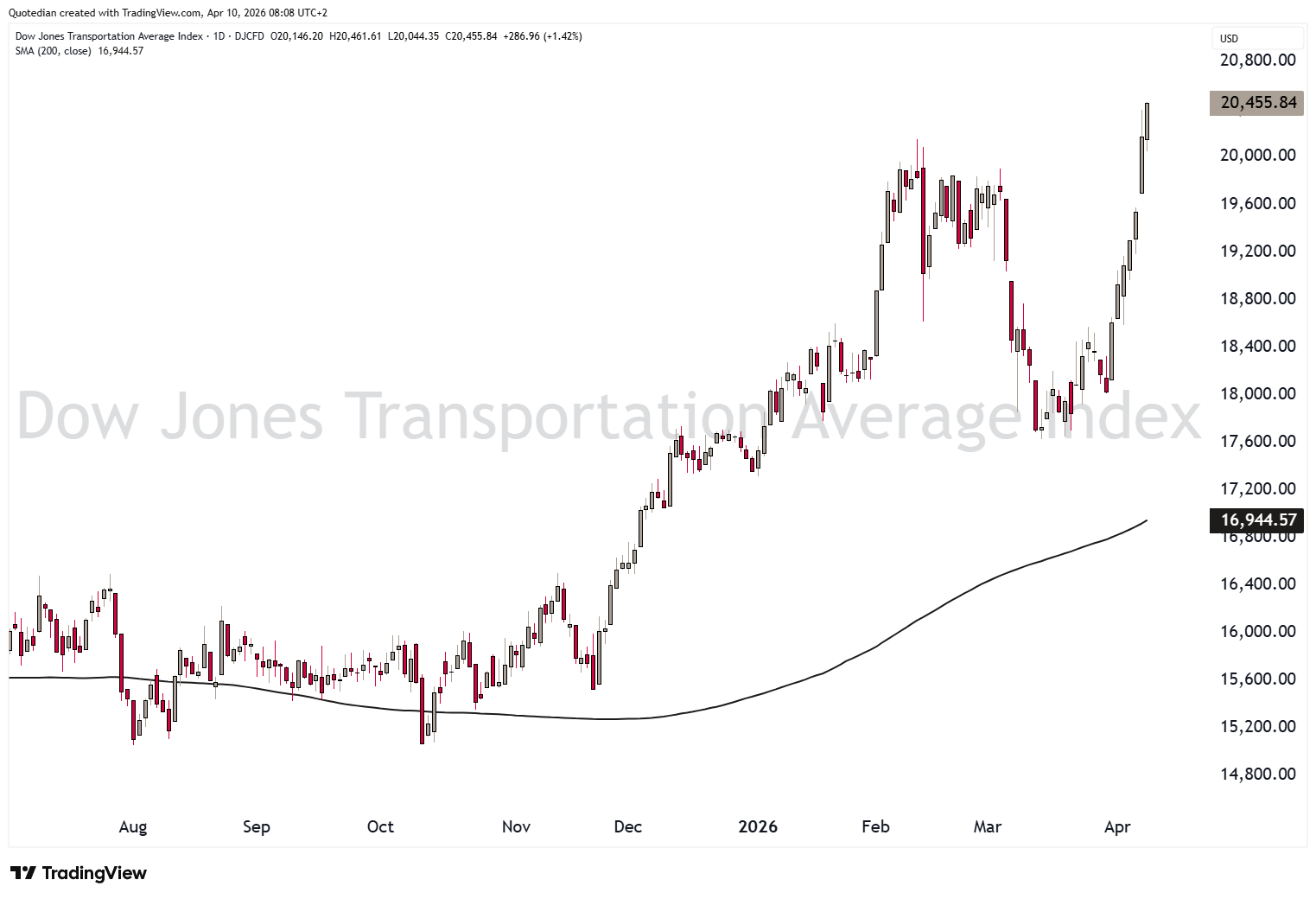 Giving additional confidence that the major indices could be hitting new all-time highs (ATH) soon, is that more cyclical measures, such as the DJ Transport index,