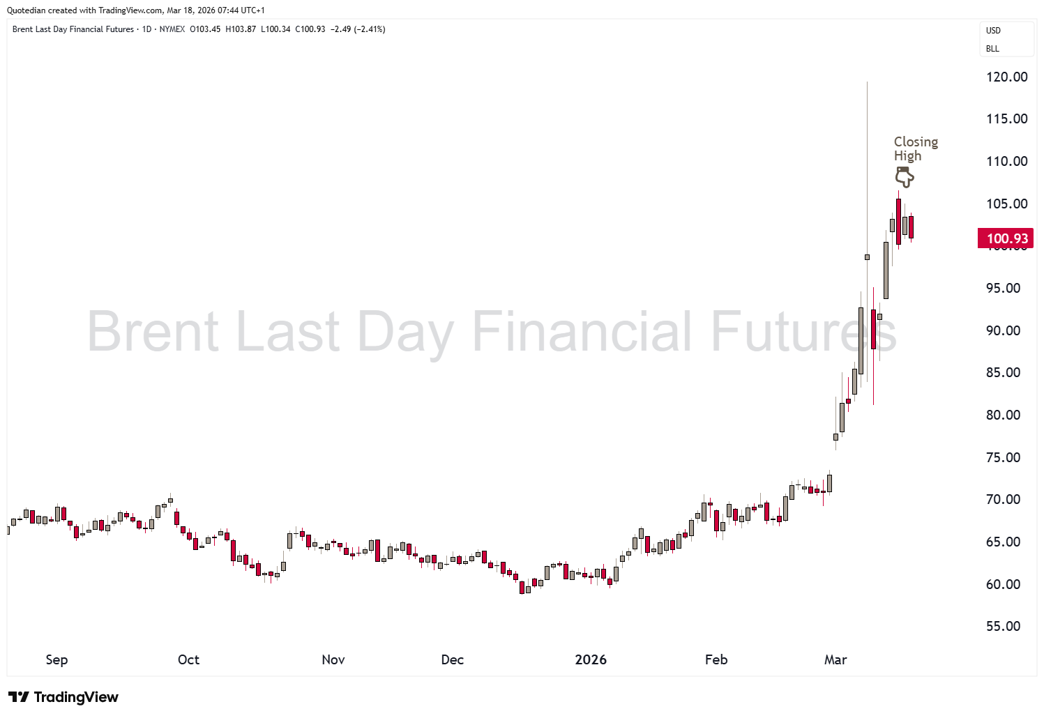 Despite the oil price (Brent) spiking higher yesterday and clocking in a closing high for this cycle,