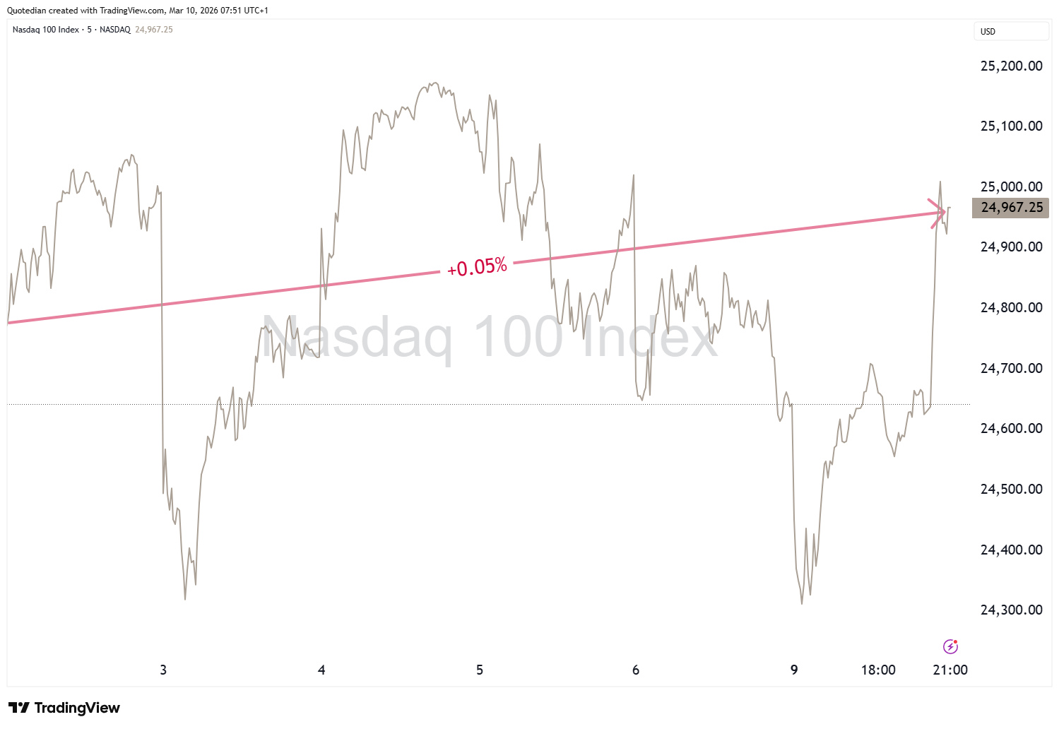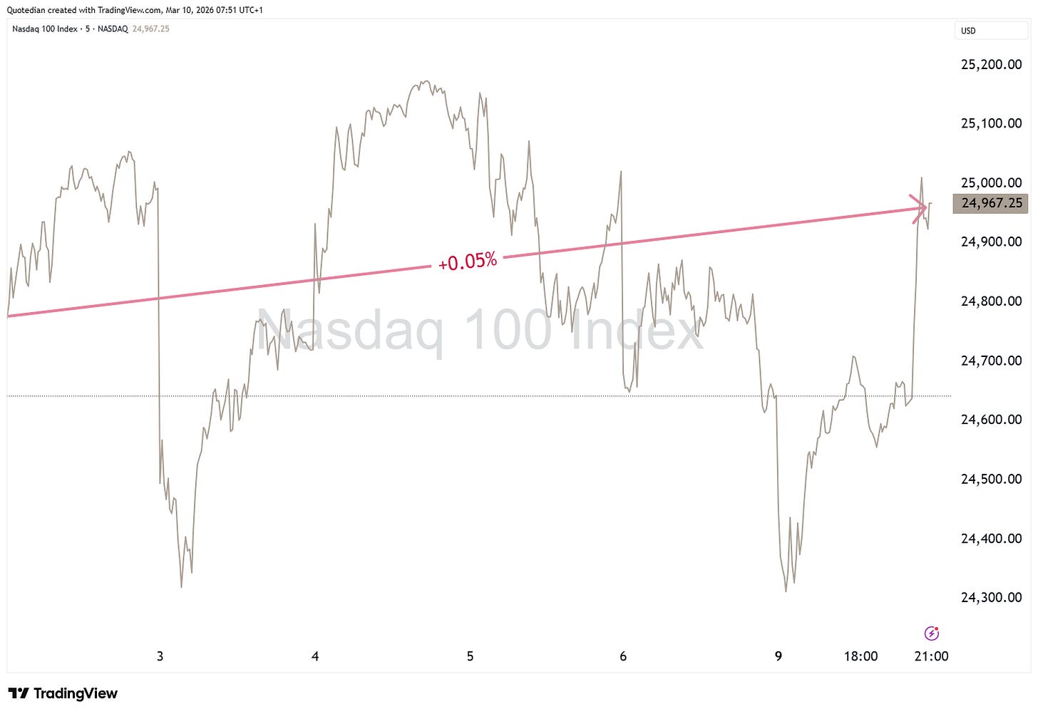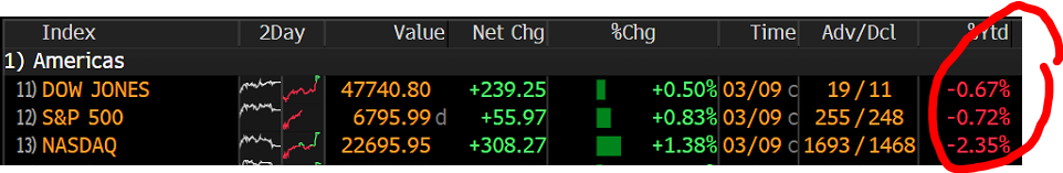 The weakest element on the table above, the Nasdaq, is actually UP in March so far, i.e. UP since the war in Iran broke out …