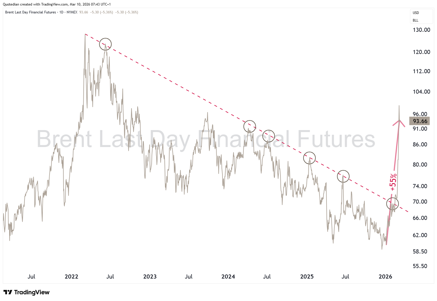 Oil — does Brent hold sub-$95 or do we retest $100? Every Trump tweet/Truth Social post is a volatility event