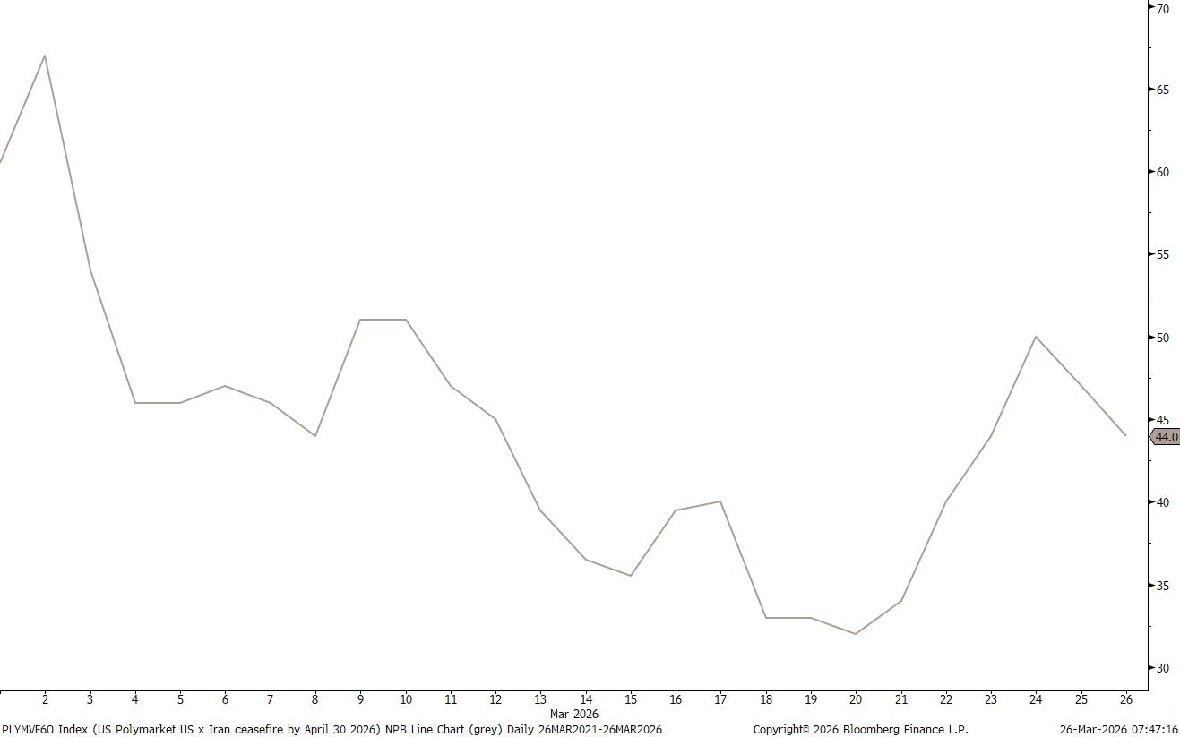 Maybe the Polymarket bet on a US x Iran ceasefire by April 30th at close to 50-50 is a tell sign for investors’ indecisiveness: