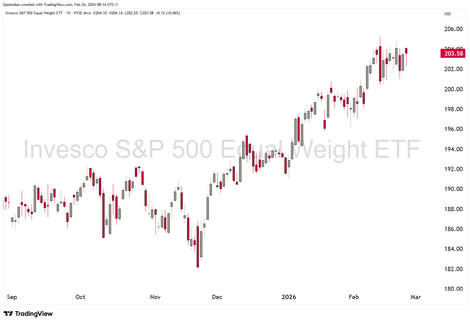 Hence, no surprise then to see that the equal-weight version of the S&P 500 (proxied via RSP ETF) closed only a quarter of a percentage point off a new all-time high:
